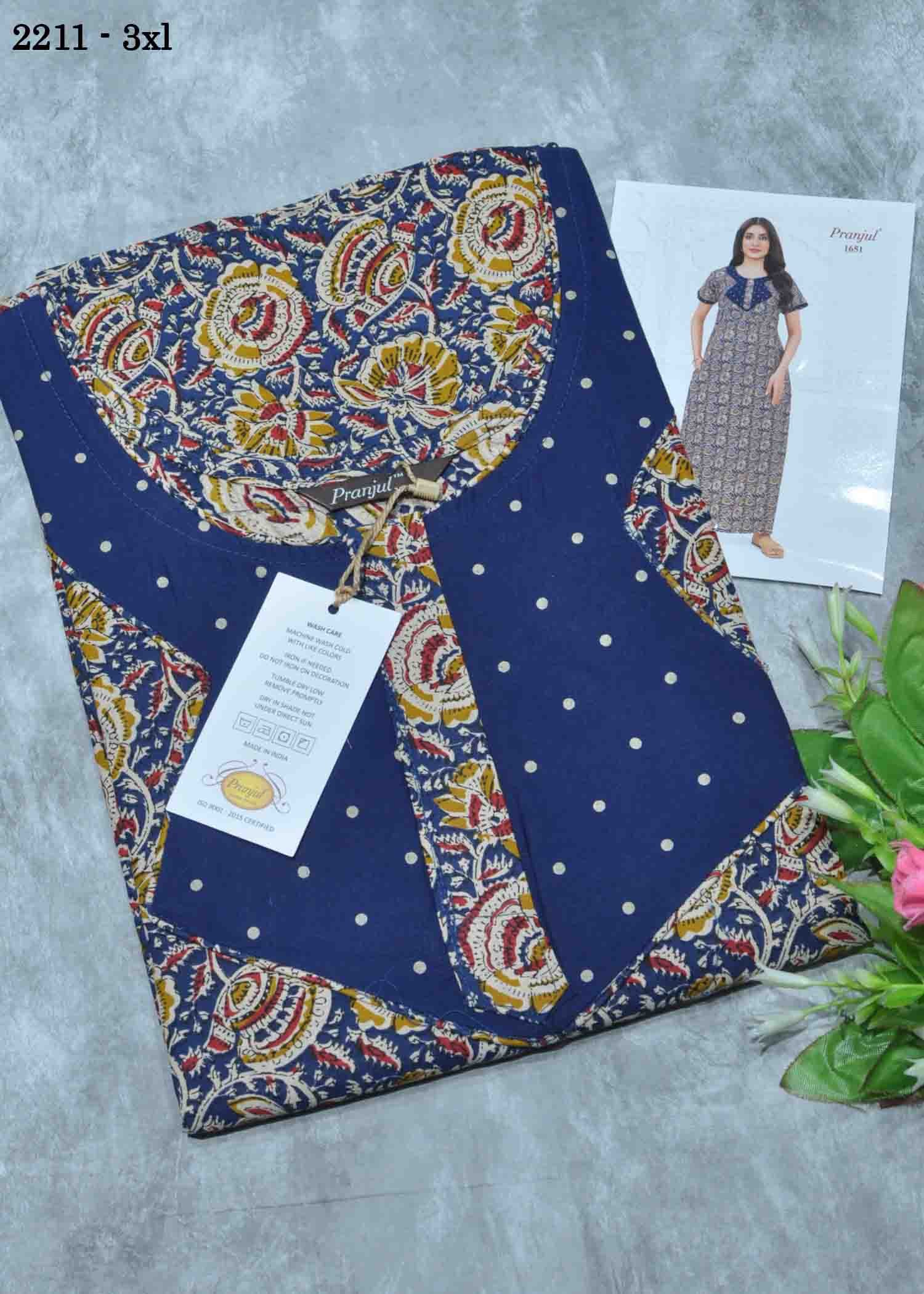 Lumini -2211 [3XL] NavyBlue Color (Pranjul Brand) Cotton Readymade Pocket Nighty CM1347939 (LR1D)