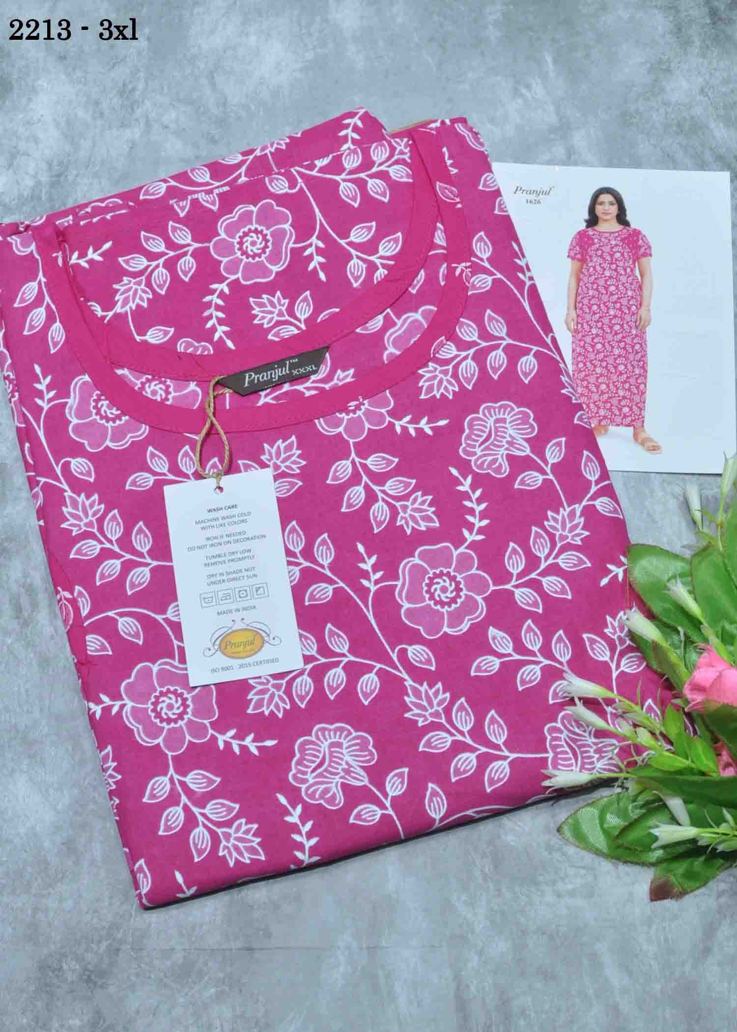 Lumini -2213 [3XL] Pink Color (Pranjul Brand) Cotton Readymade Pocket Nighty CM1347939 (LR1D)