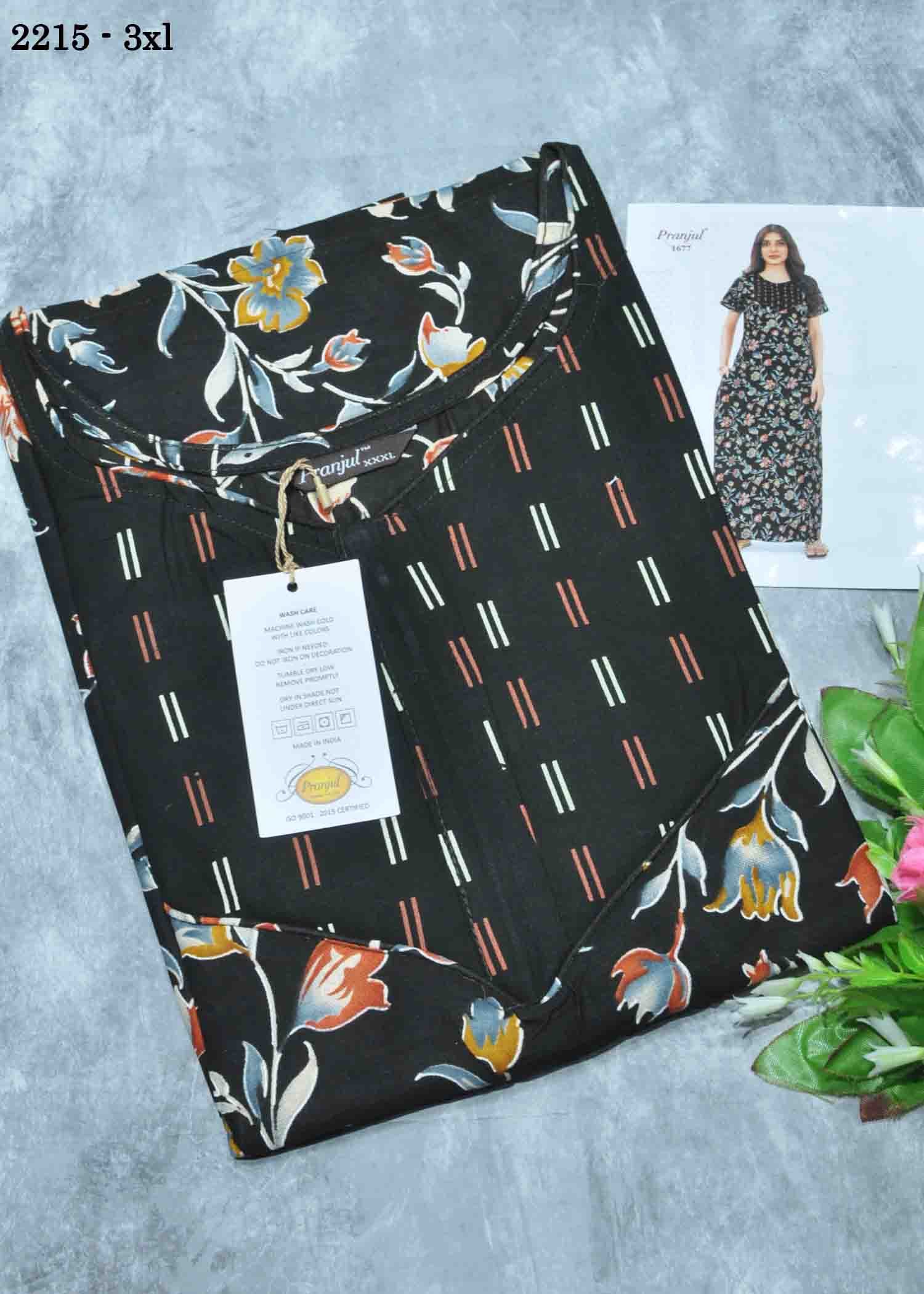 Lumini -2215 [3XL] Black Color (Pranjul Brand) Cotton Readymade Pocket Nighty CM1347939 (LR1D)