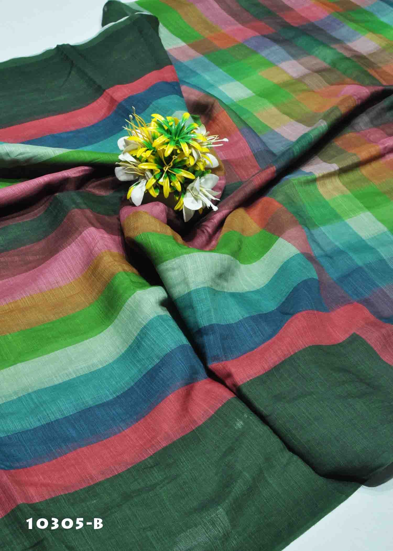 Madhi -10305-B Dark Green Color Trendy Linen Cotton Saree CM1295815 [LR5D]