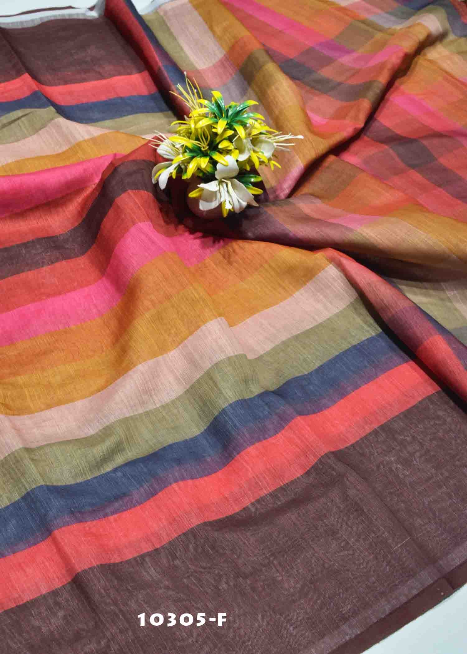 Madhi -10305-F Dark Brown Color Trendy Linen Cotton Saree CM1295815 [LR5D]