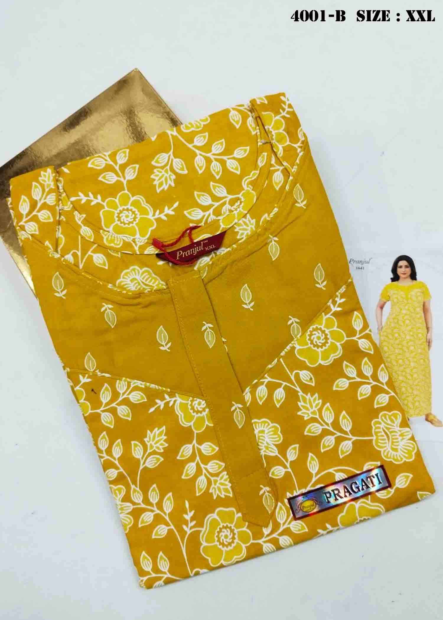 Madhumitha -4001-B [XXL] Mustard Color (Pranjul Brand) Cotton Readymade Pocket Nighty CM1367587 [LR1D]