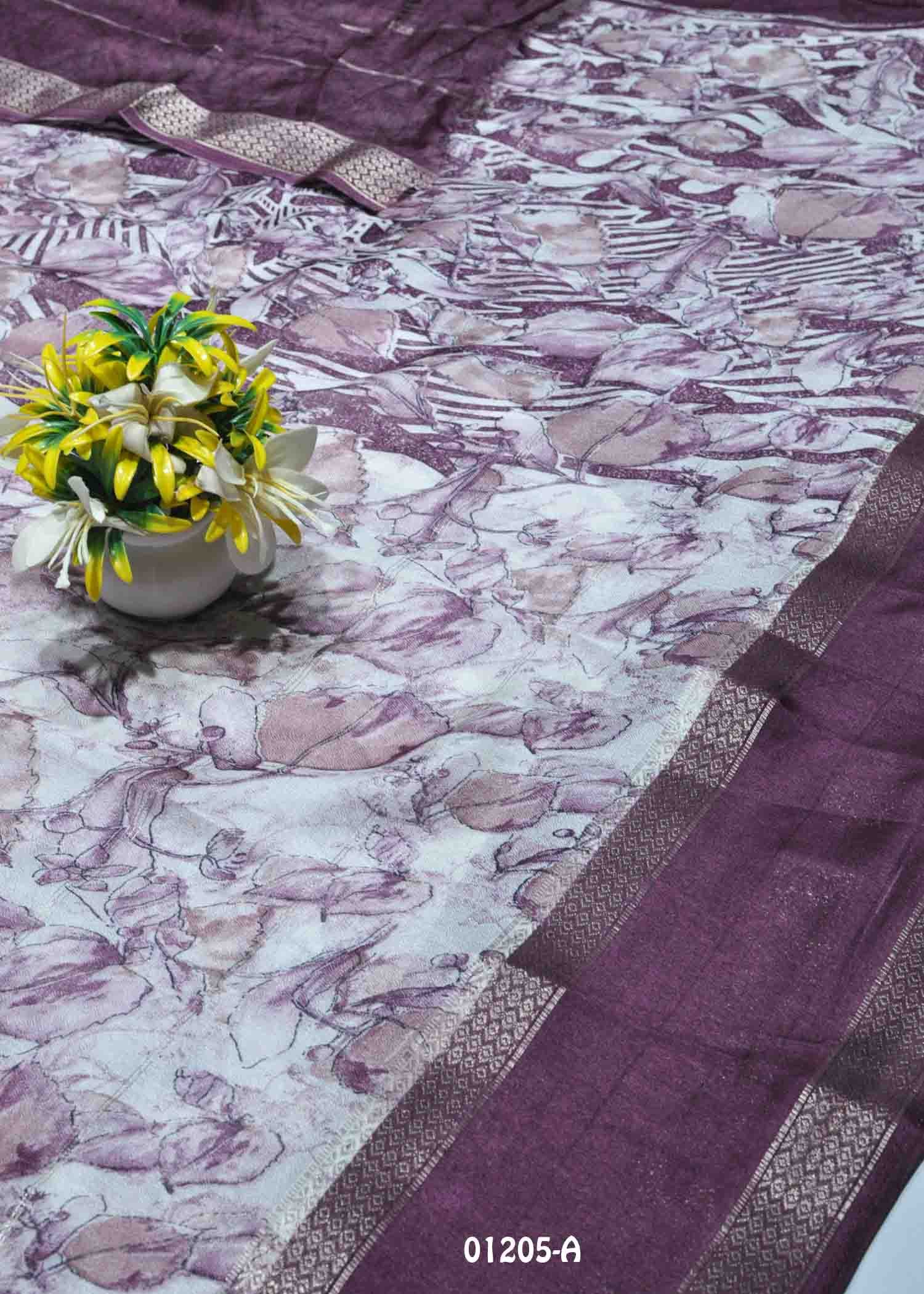 Malarvizhi -01205-A Halfwhite With Purple Color New Arrival Moss Chiffon Saree CM1340957 (RR9C)