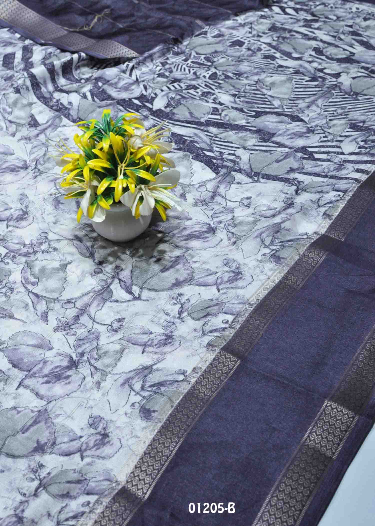 Malarvizhi -01205-B Halfwhite With Violet Color New Arrival Moss Chiffon Saree CM1340957 (RR9C)