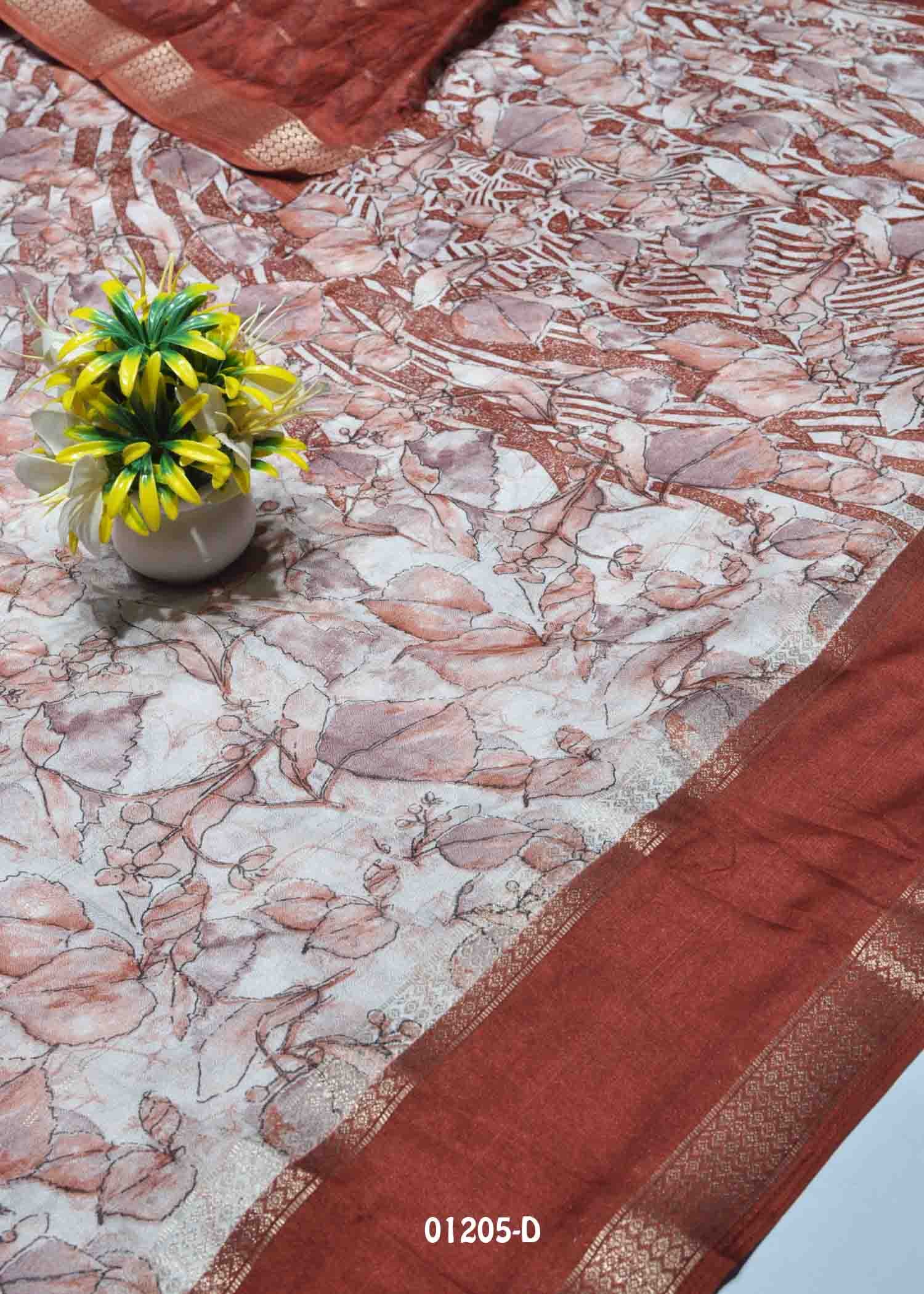Malarvizhi -01205-D Halfwhite With Brown Color New Arrival Moss Chiffon Saree CM1340957 (RR9C)