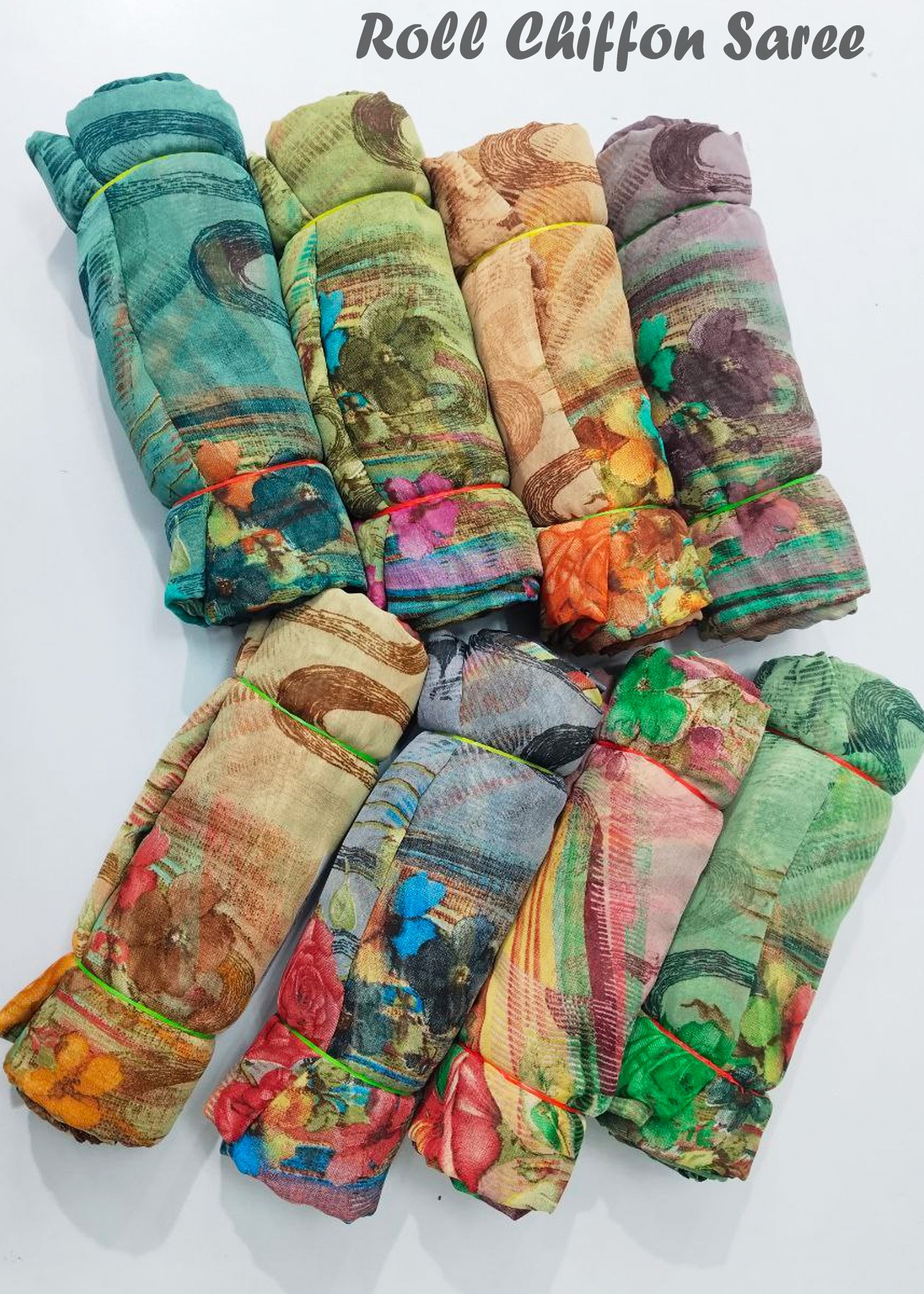 | WRAP YOURSELF IN ELEGANCE WITH ROLL CHIFFON SAREES