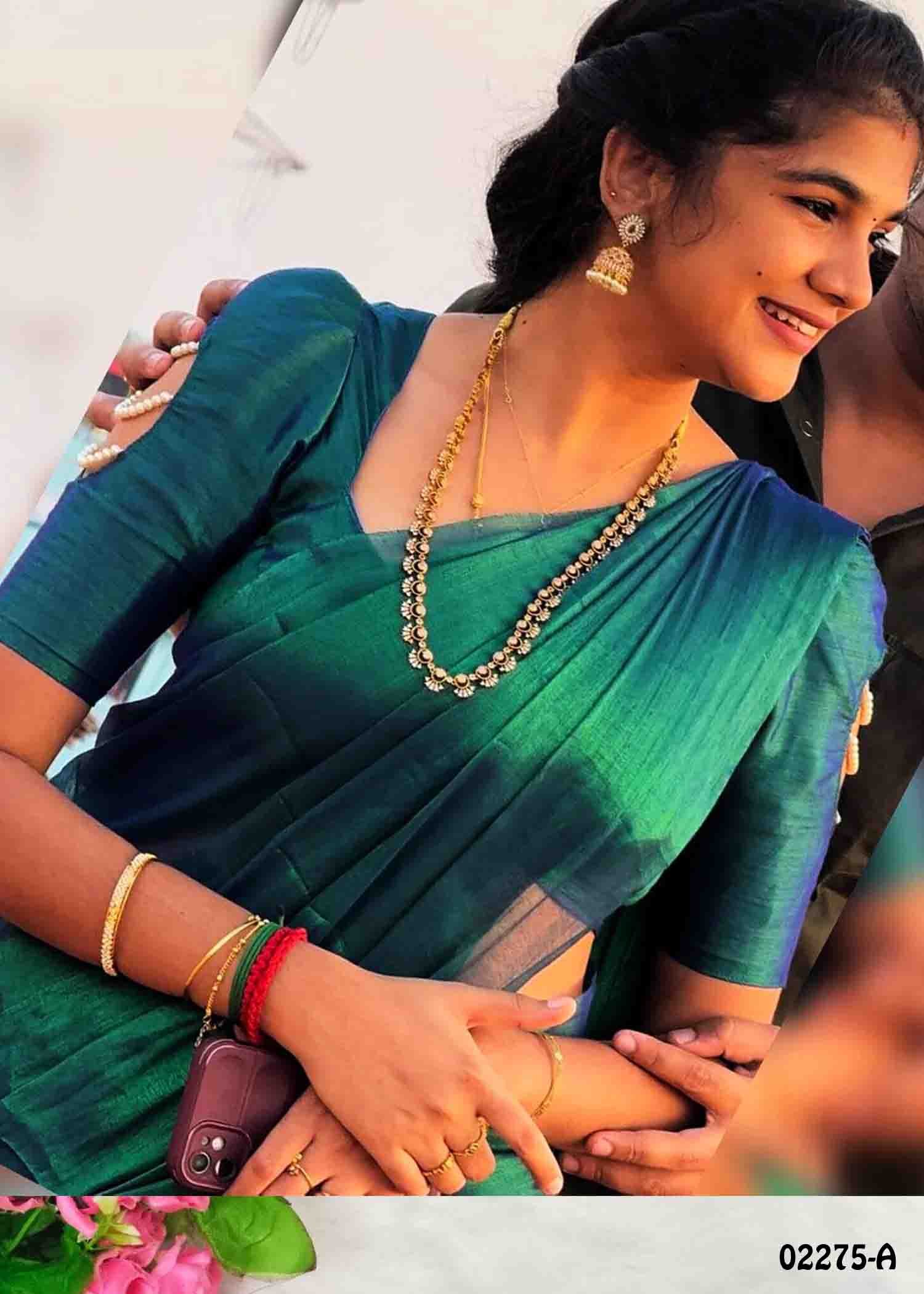 Mathinika – 02275-A PineGreen Color Traditional Look Tissue Cotton Saree CM1353927 (RR12B)