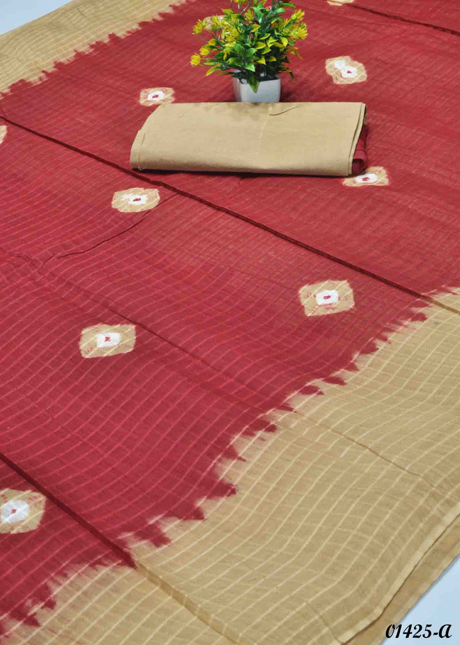 Mathuri – 01425-A Red Color Battik Cotton Saree CM1340443 (RR4C)