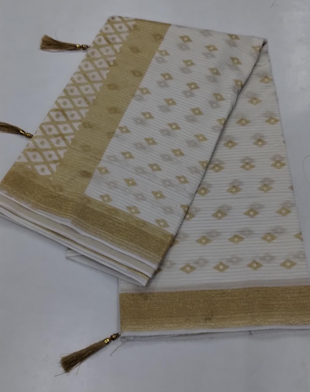 Mumtaj 11415-A white and gold colour saree CM1317285