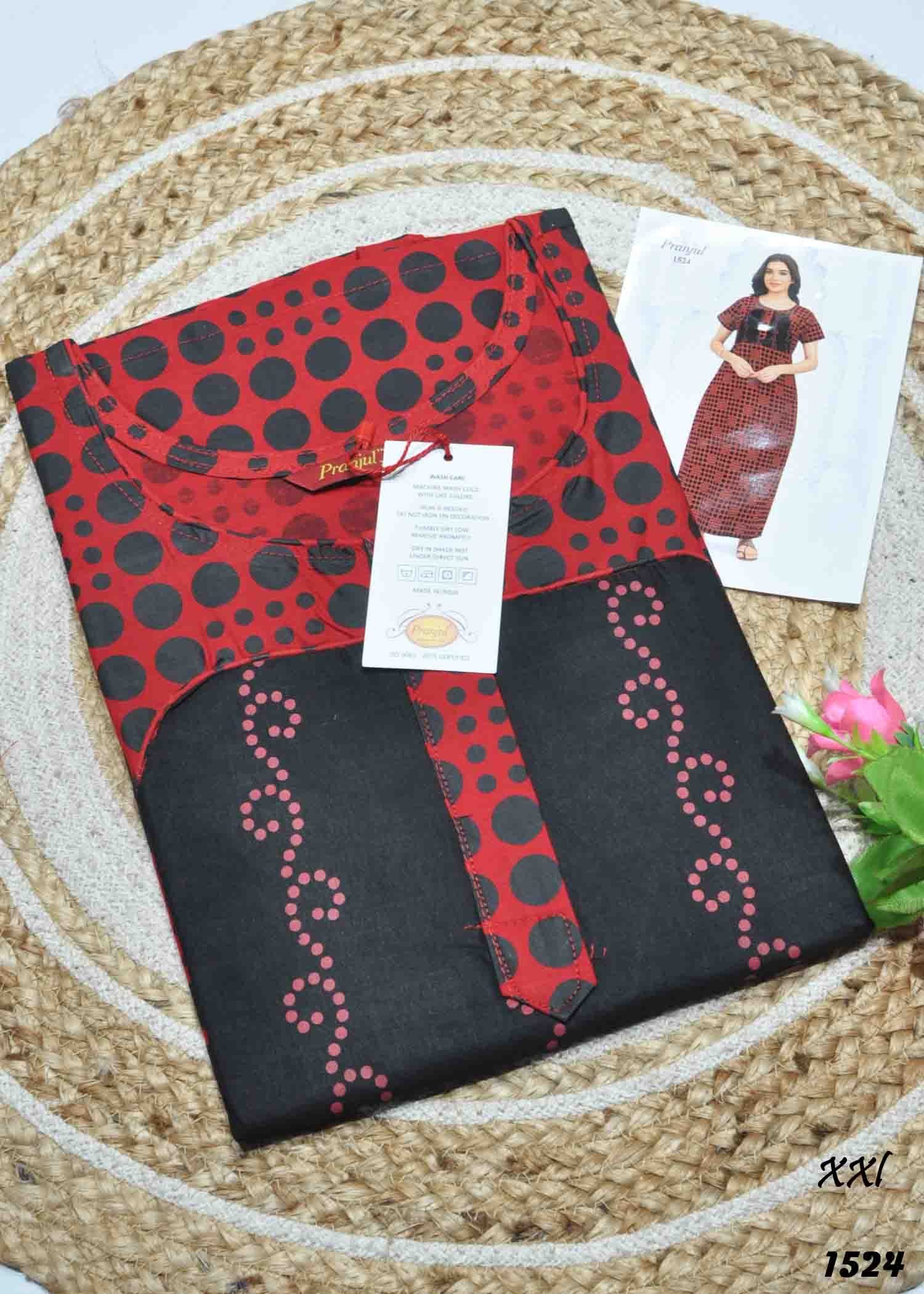 Nesa -1524 [XXL] Red&Black Color (Pranjul Brand) Cotton Readymade Pocket Nighty CM1300265 (LR2C)