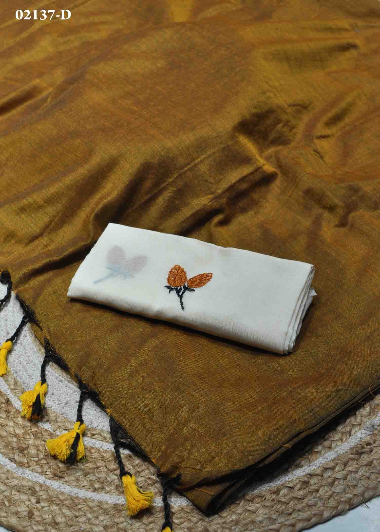 Nishanthini – 02137-D Mustard Color Plain Handloom Cotton Saree CM1349046 (LR5E)