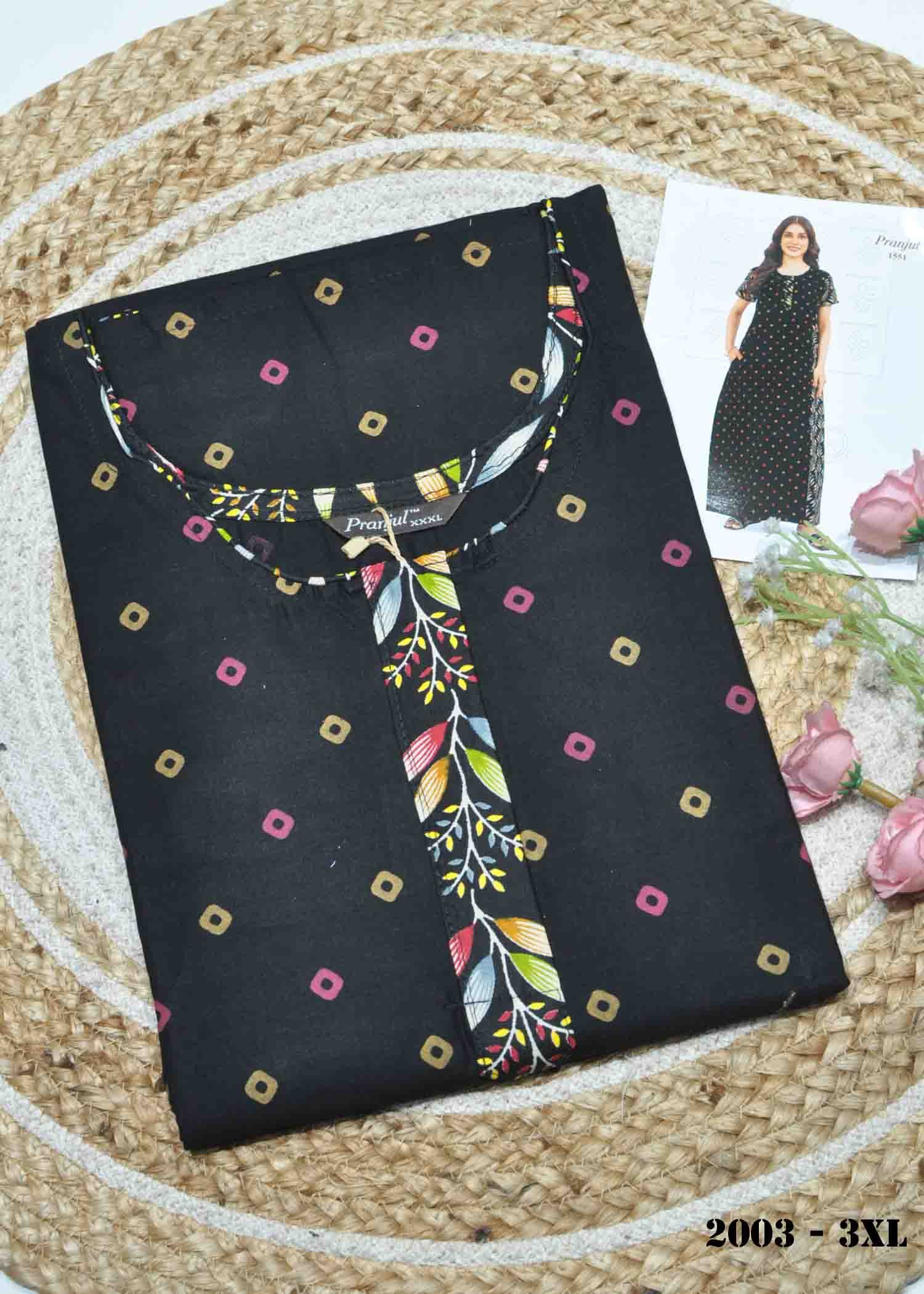 Nivarthika -2003 [3XL] Black Color (Pranjul Brand) Cotton Readymade Pocket Nighty CM1313899 (RR1B)