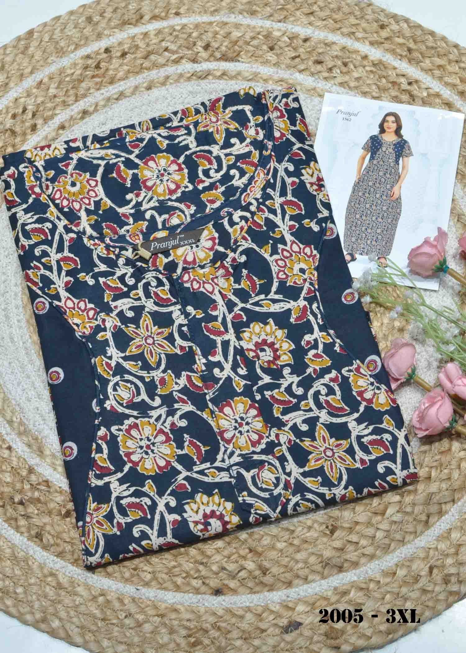 Nivarthika -2005 [3XL] NavyBlue Color (Pranjul Brand) Cotton Readymade Pocket Nighty CM1313899 (RR1B)