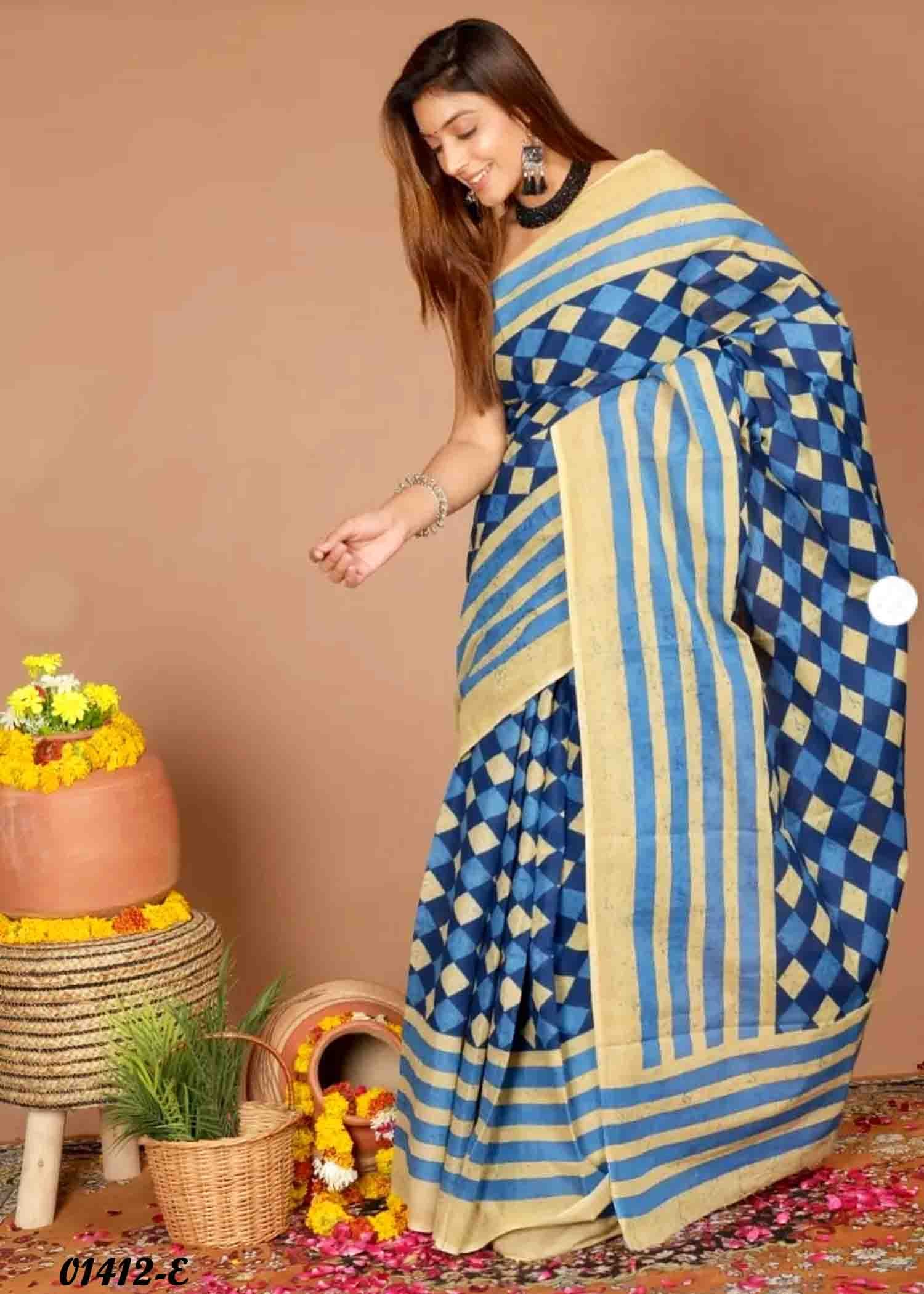 Parijatham -01412-E Blue Color Trendy MulMul Cotton Saree CM1349260 (LR4E)