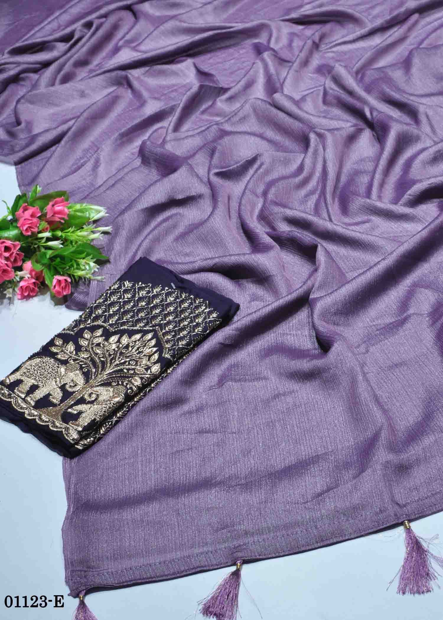 Poojitha – 01123-E Lavender Color New Arrival Shimmer Chiffon Saree CM1352977 (LR8D)