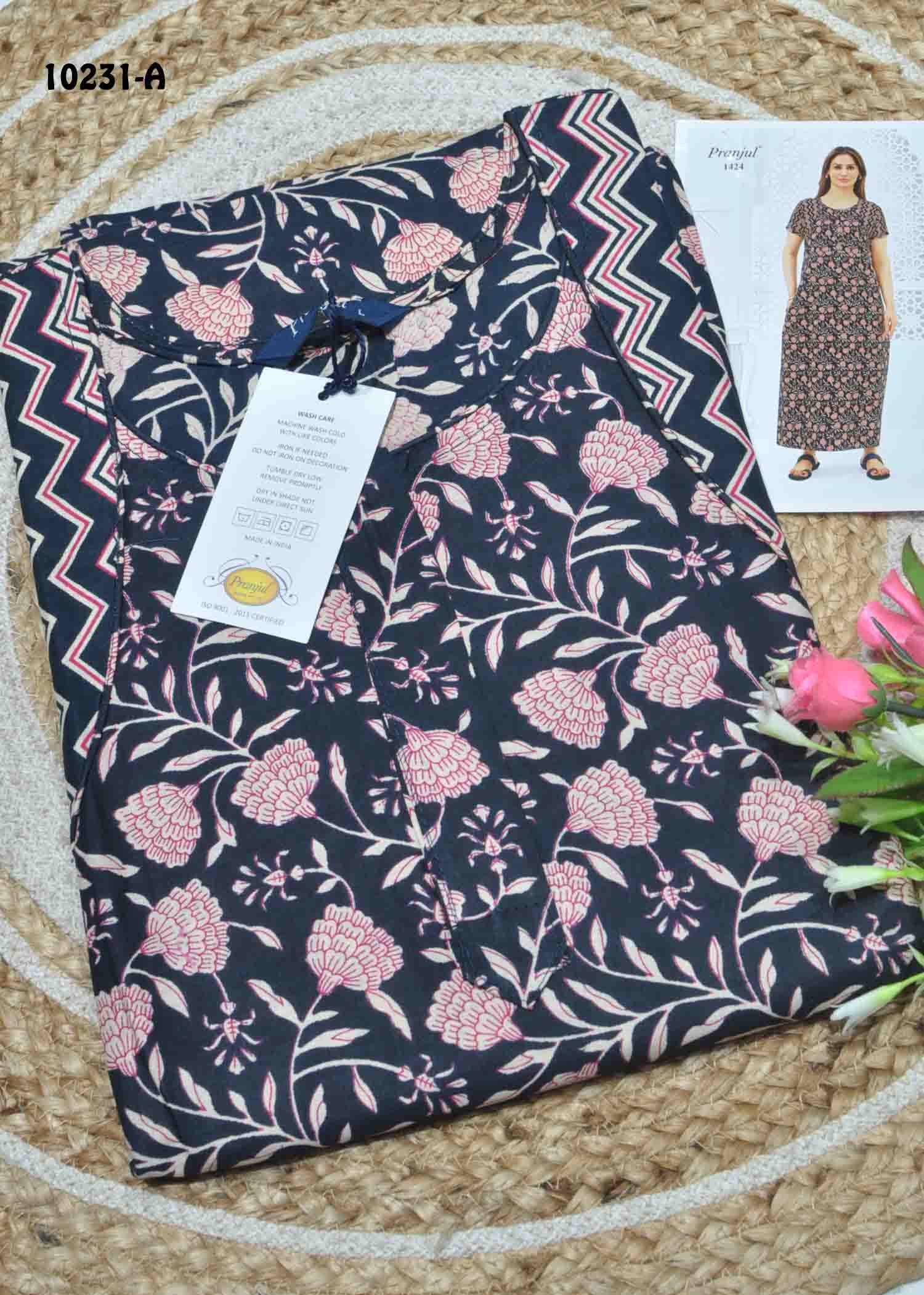 Praneetha -10231-A [L] NavyBlue Color (Pranjul Brand) Cotton Readymade Pocket Nighty CM1306129 (LR1B)