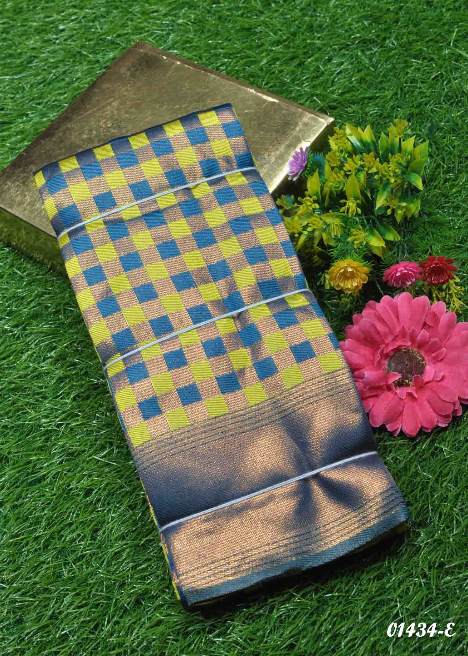 Pratipa – 01434-E PeacockBlue Color Checked Semi Banaras Sarees CM1350211 (RR2D)