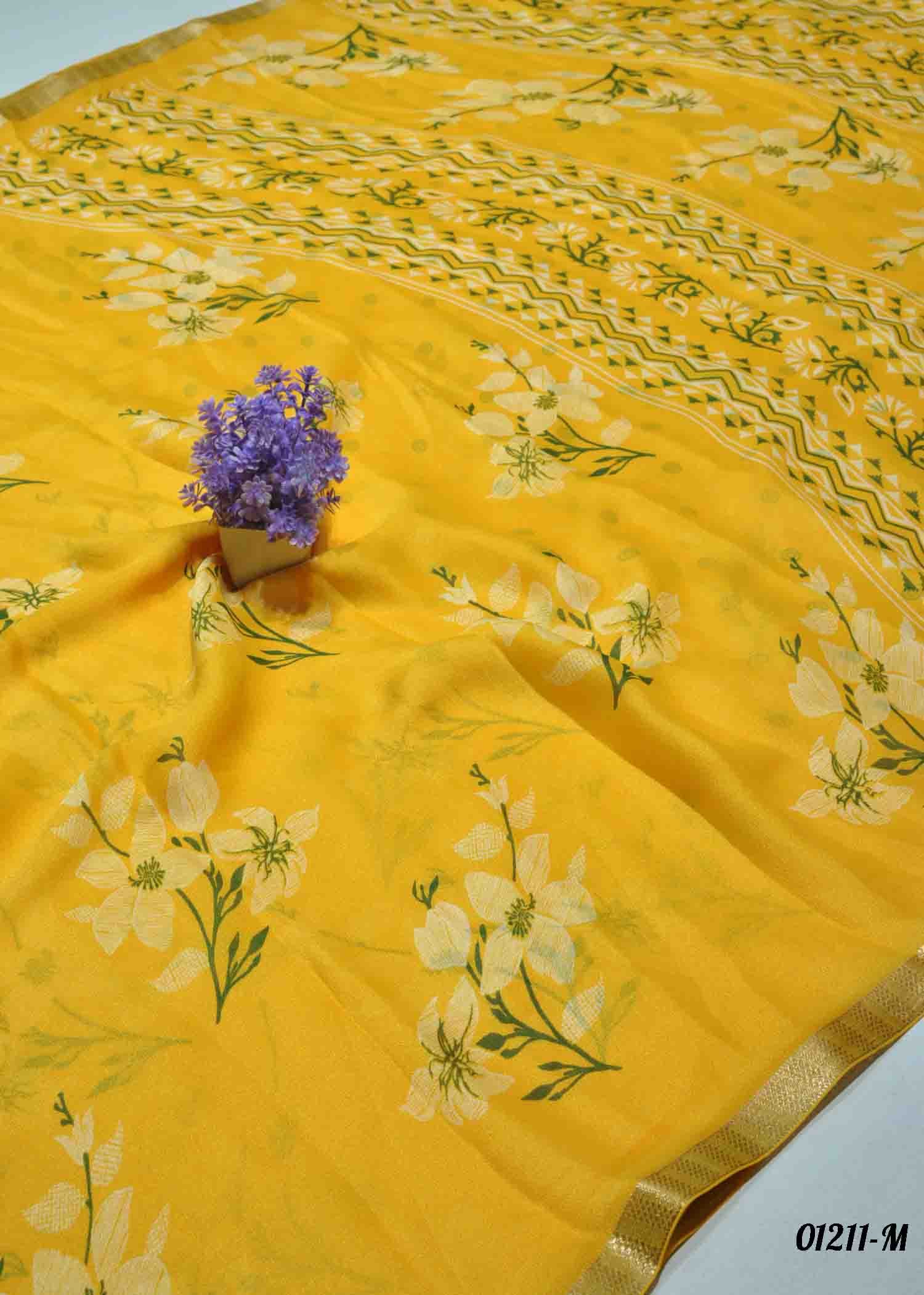 Saindhavi -01211-M Yellow Color New Arrival Moss Chiffon Saree CM1335594 (RR11D)