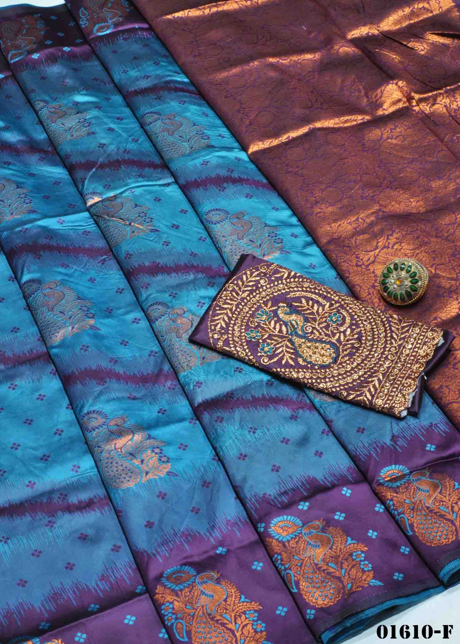 Samira -01610-F Ocean Blue Color New Arrival Trending Semi Banaras Soft Silk Sarees CM1344837 (RR2B)