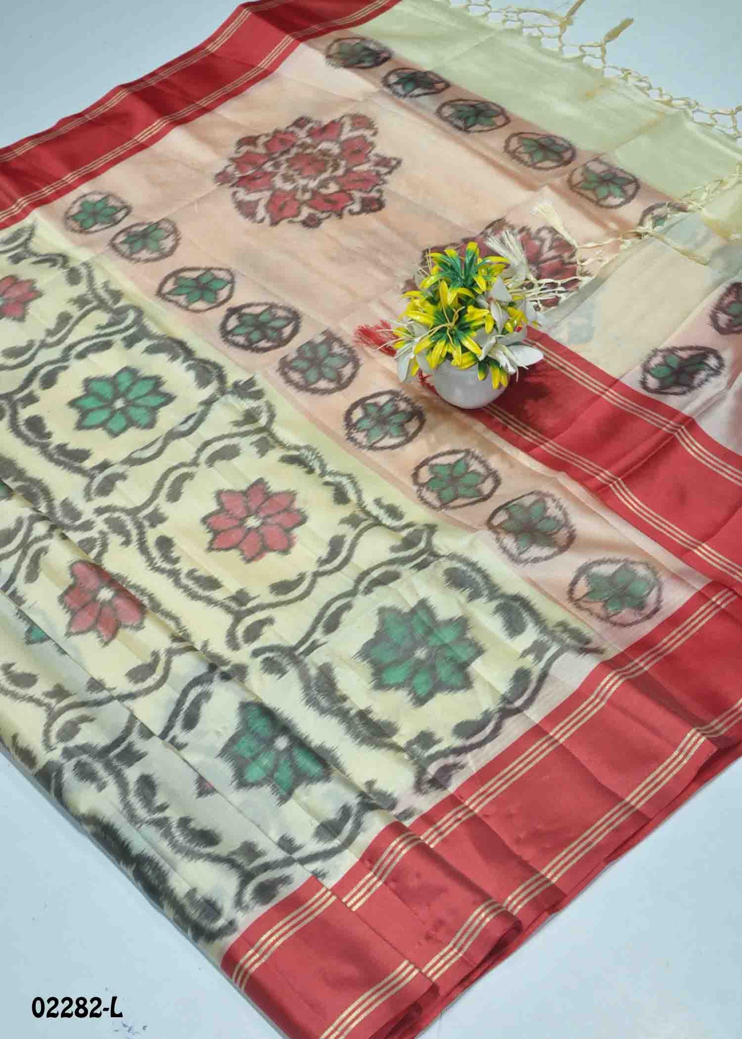 Sangavi – 02282-L Halfwhite Color Traditional Look Pochampally Silk Saree CM1361507 (RR3B)