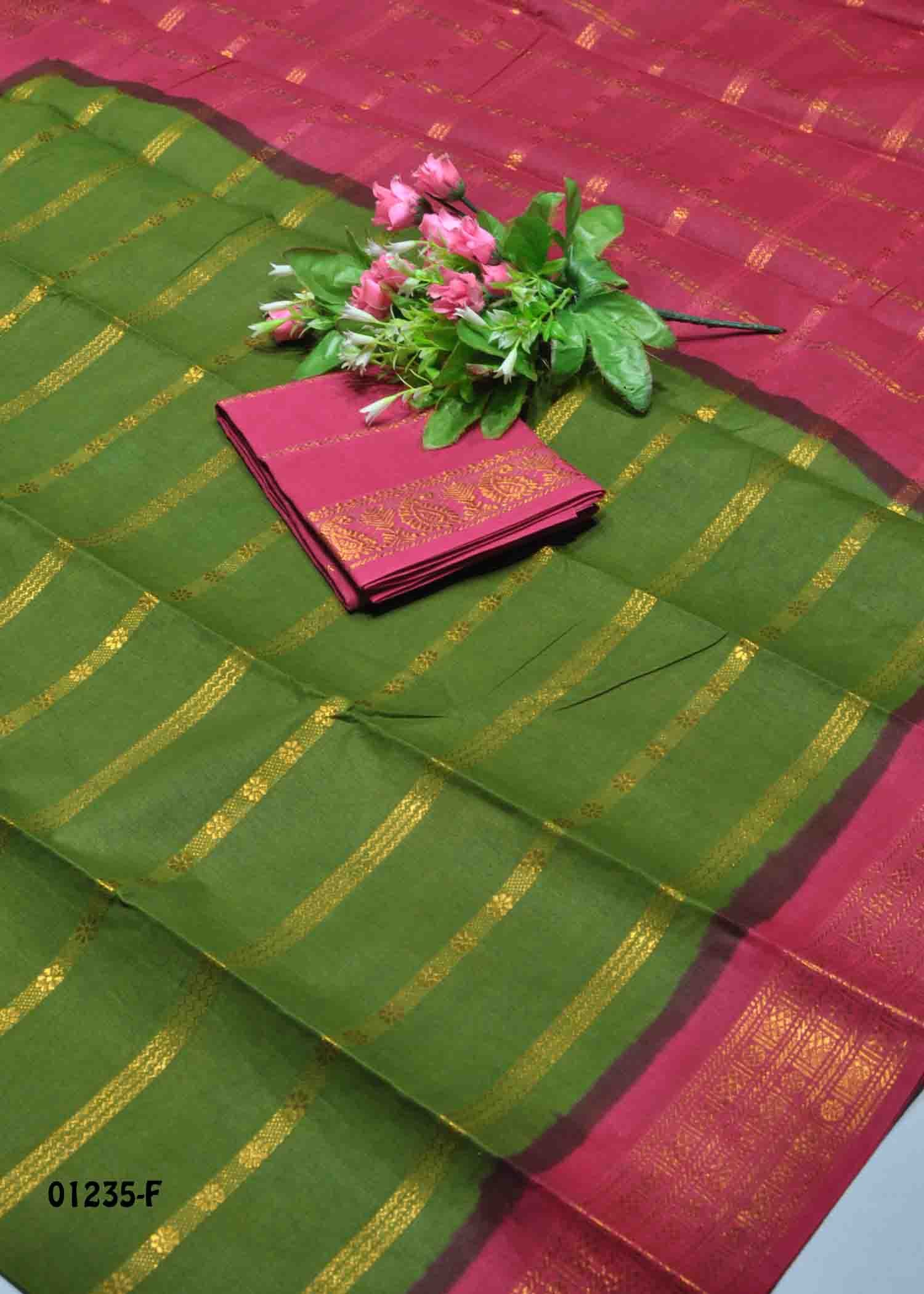 Swathy -01235-F FernGreen Color Madurai Chungudi Cotton Saree CM1343810 [RR4C]