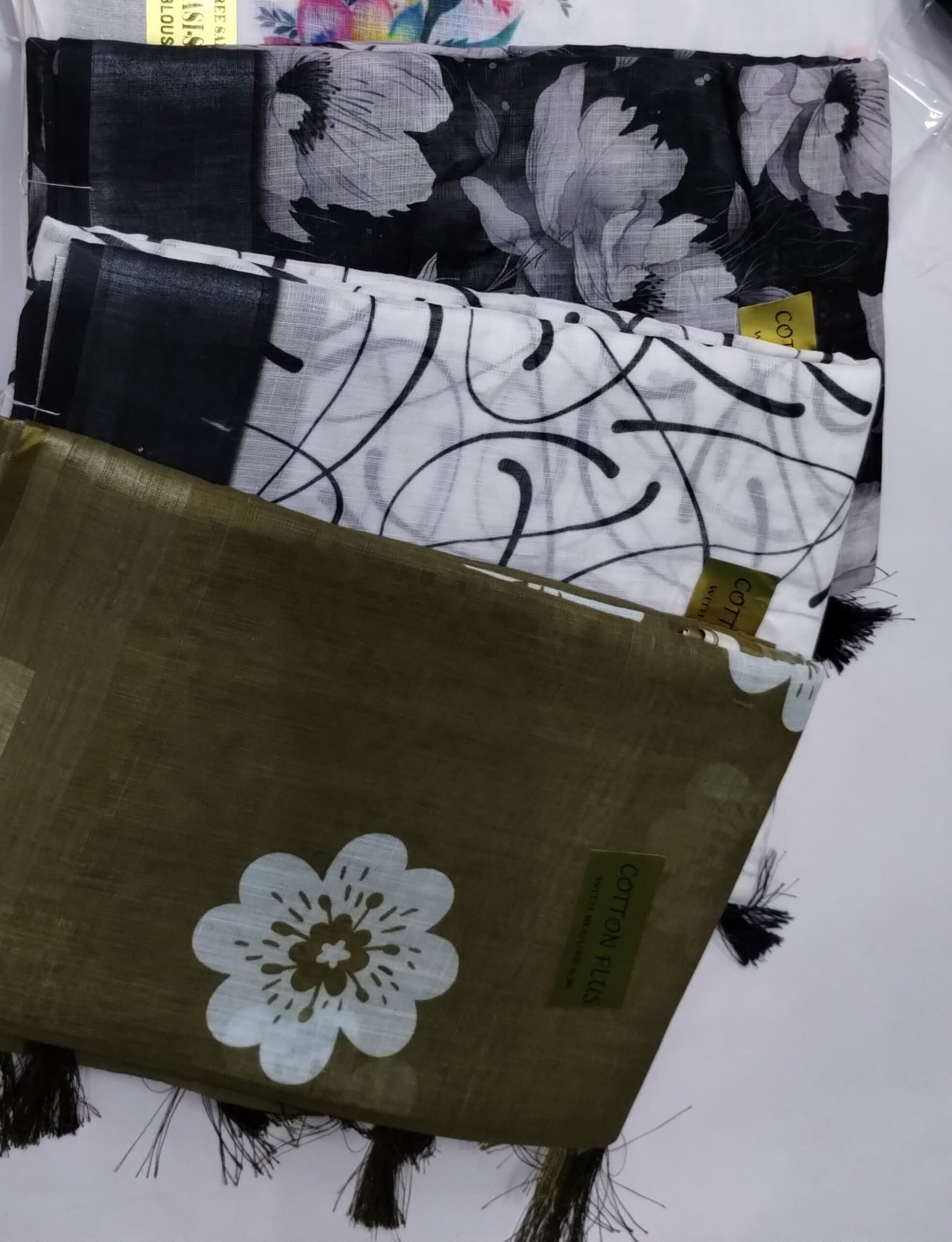 Thamil 11450-A Multi color Fancy linin cotton sarees CM1316004