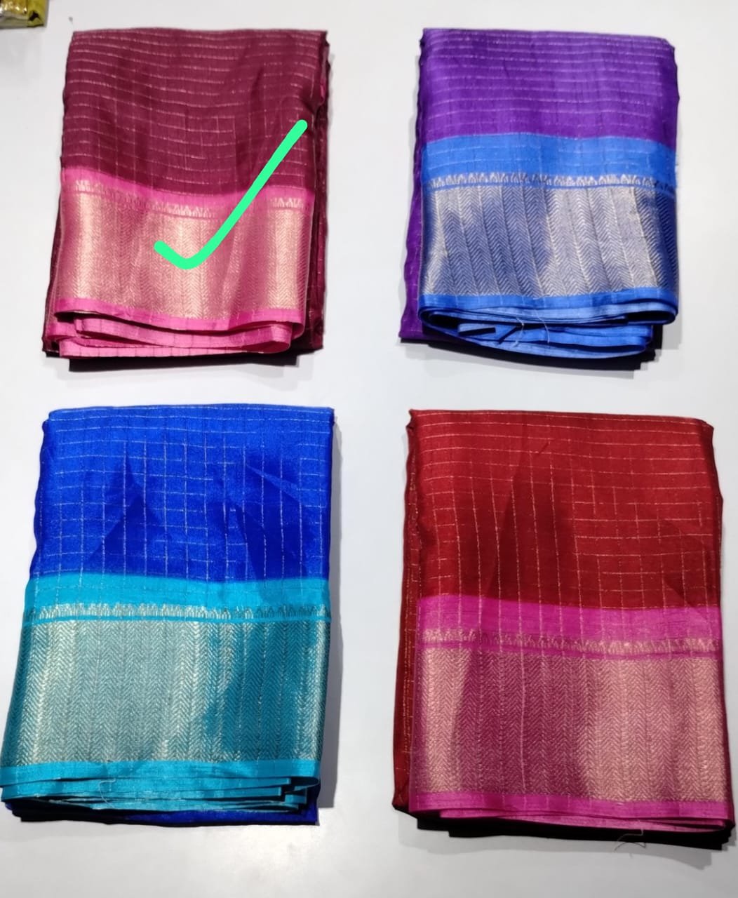 Thamil 12395-B Maroon colour checked dola silk saree CM1339684
