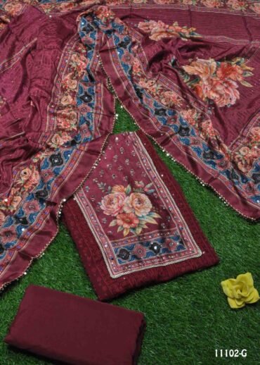 Thanushmitha – 11102-I Violet Color Geometric Pattern Dupatta and Top Fabric with Mirror work CM1317382 (LR2E)