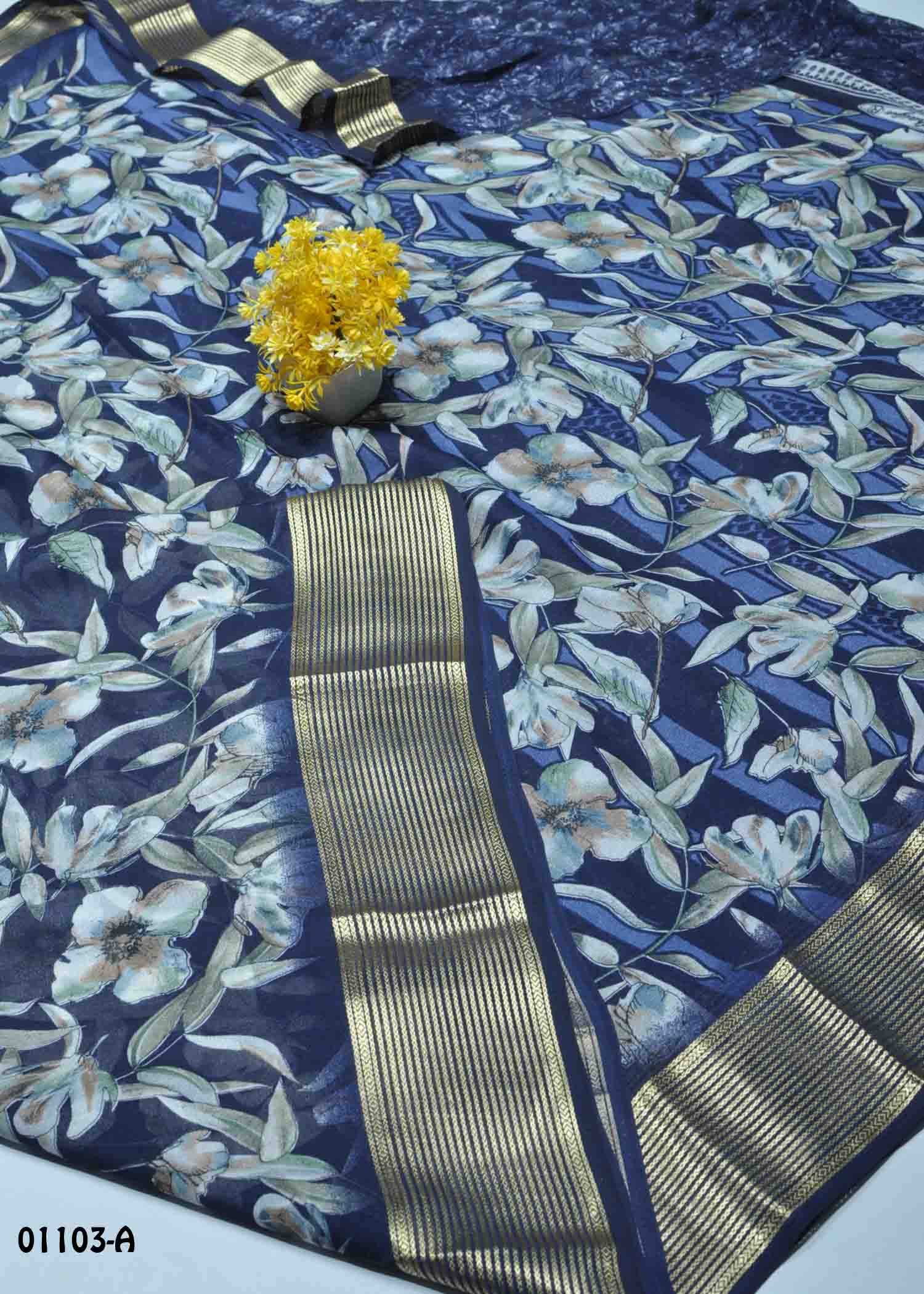 Fabric : Chiffon Saree Color : NavyBlue |