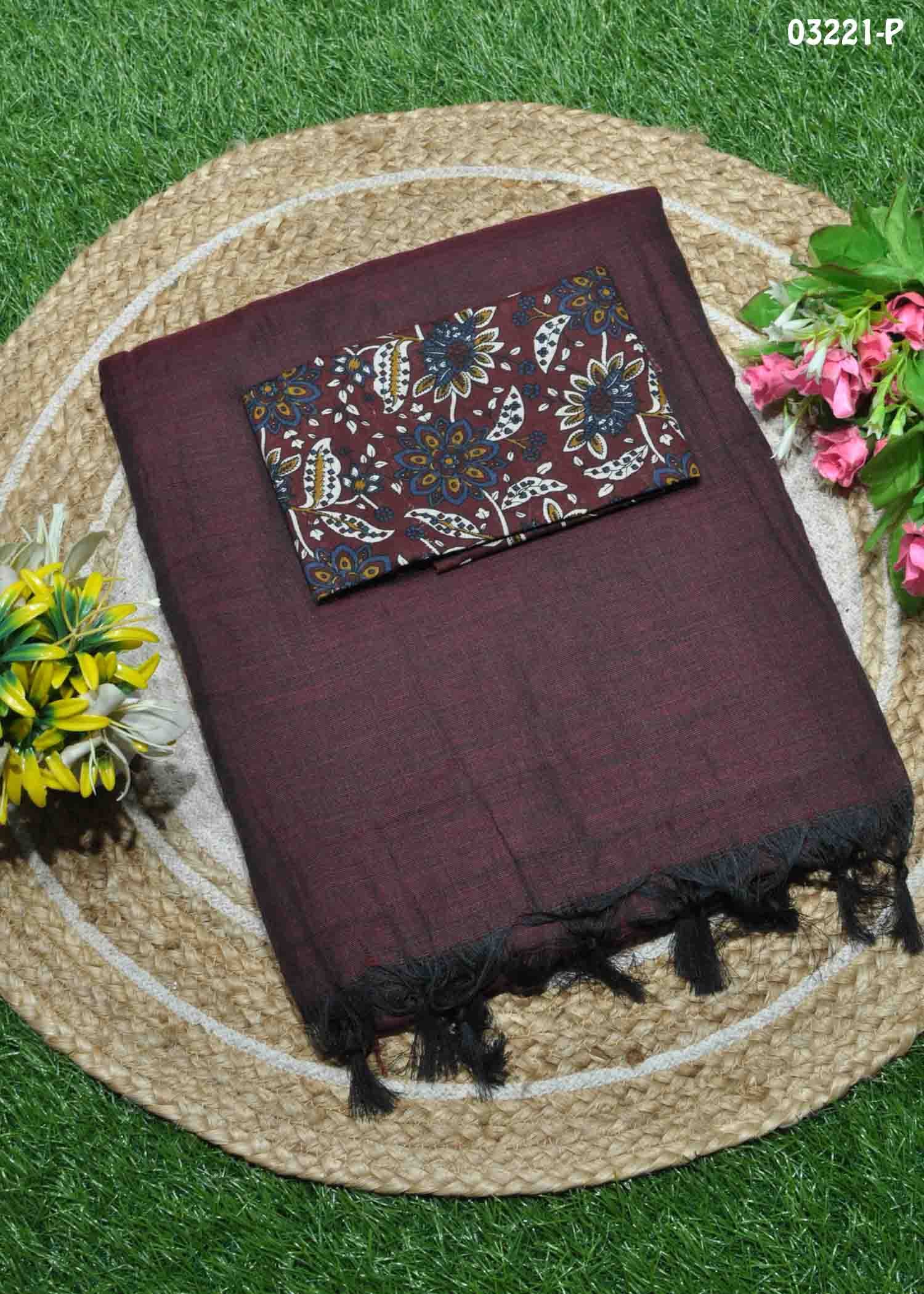 Thenmozhi – 03221-P DarkMaroon Color Plain Handloom Cotton Saree CM1364761 (RR5E)