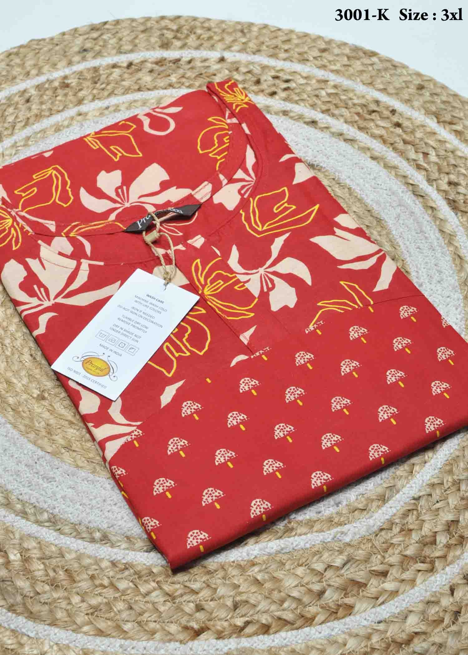 Thenmozhi -3001-K [3XL] Red Color (Pranjul Brand) Cotton Readymade Pocket Nighty CM1337464 (LR1E)