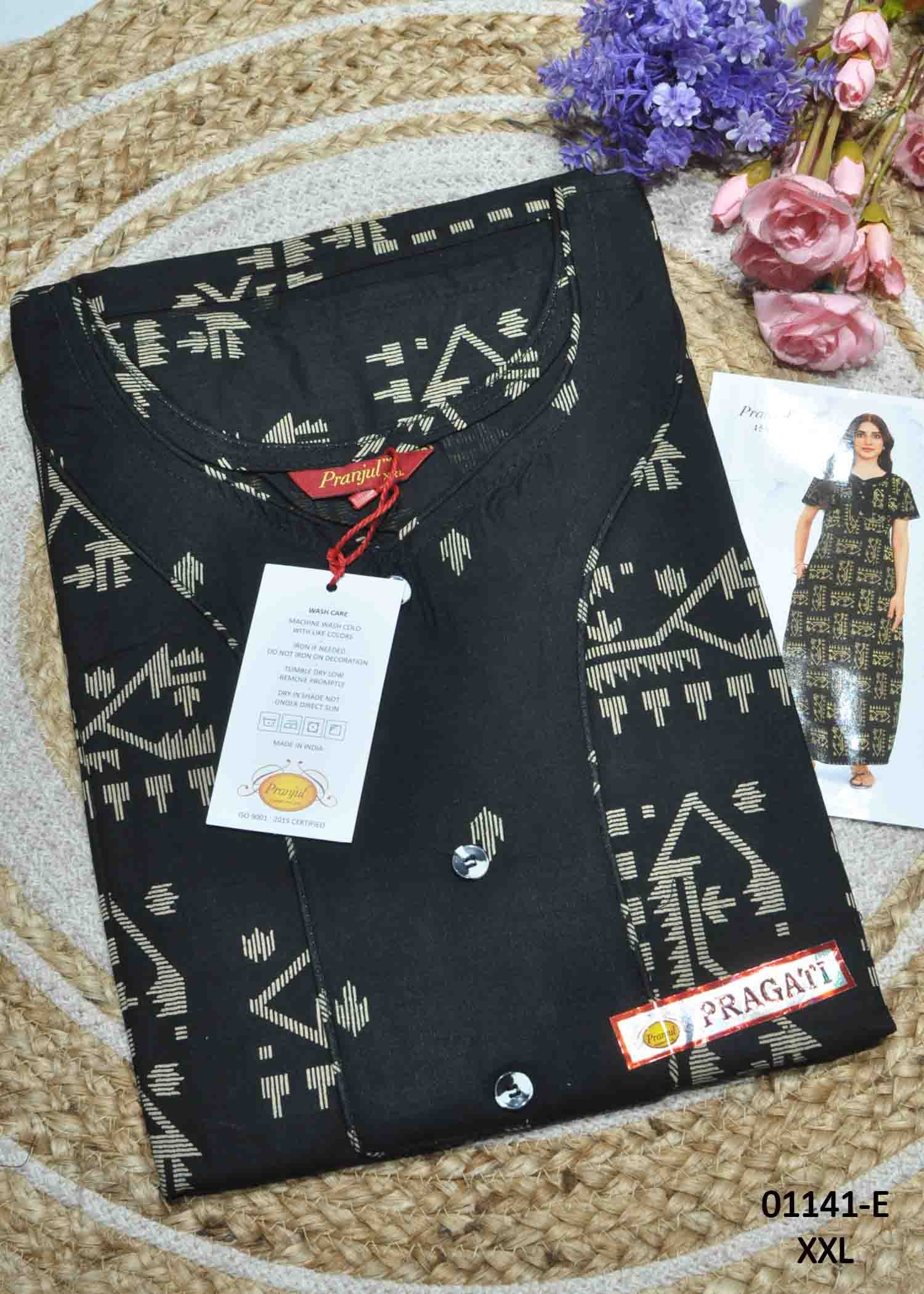 Vaidegi -01141-E [2XL] Black Color (Pranjul Brand) Cotton Readymade Pocket Nighty CM1347938 (LR1C)