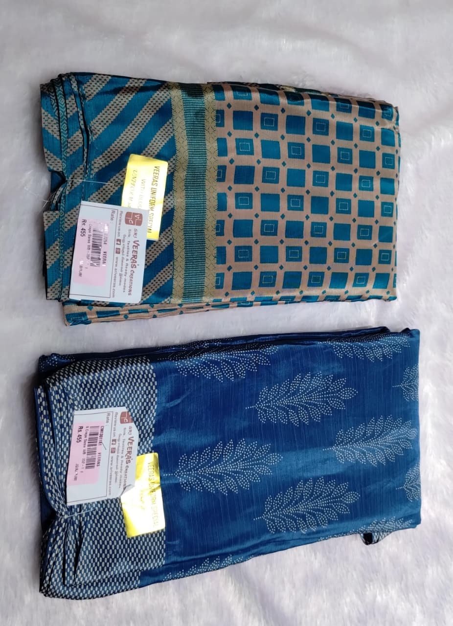 Veeras special 02455-A Mayil green & Grey color crape sarees CM1327254, CM1301141