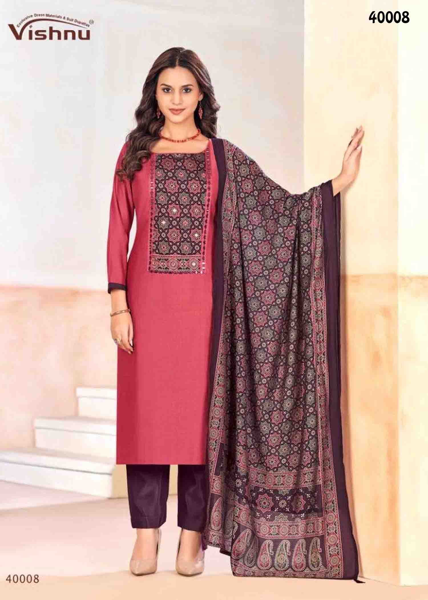 Vishnu Ajjrak – 40008 Red Color Vetican Silk Salwar Material CM1345153