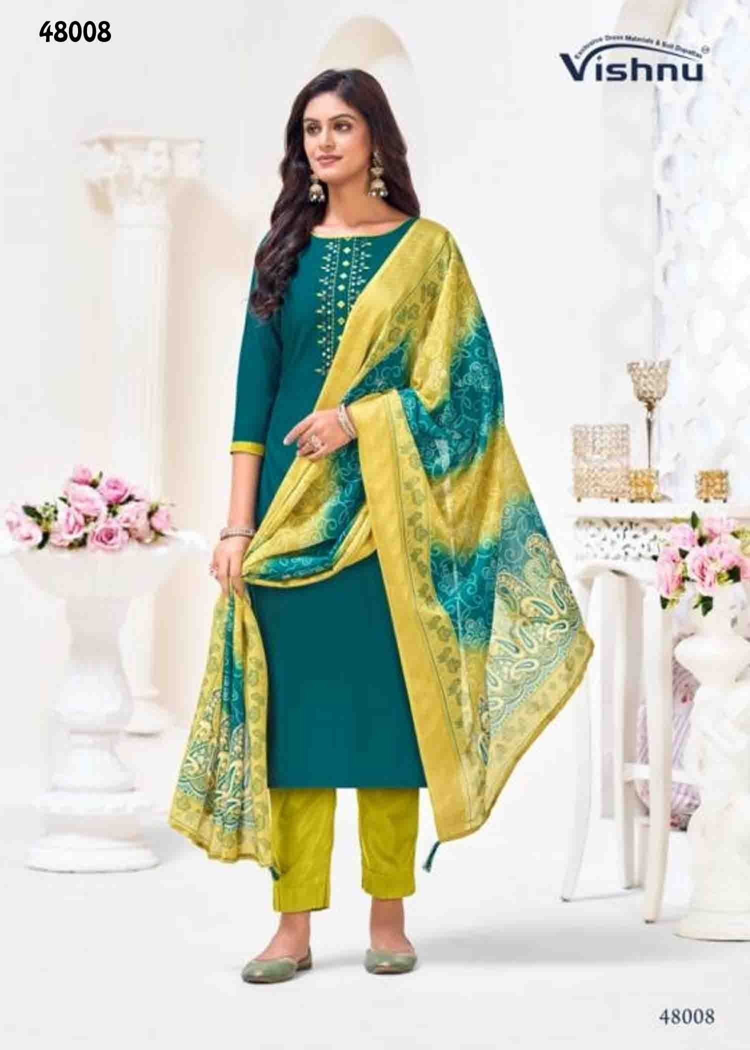 Vishnu Alavira – 48008 PeacockGreen Color Vetican Silk Salwar Material CM1345246
