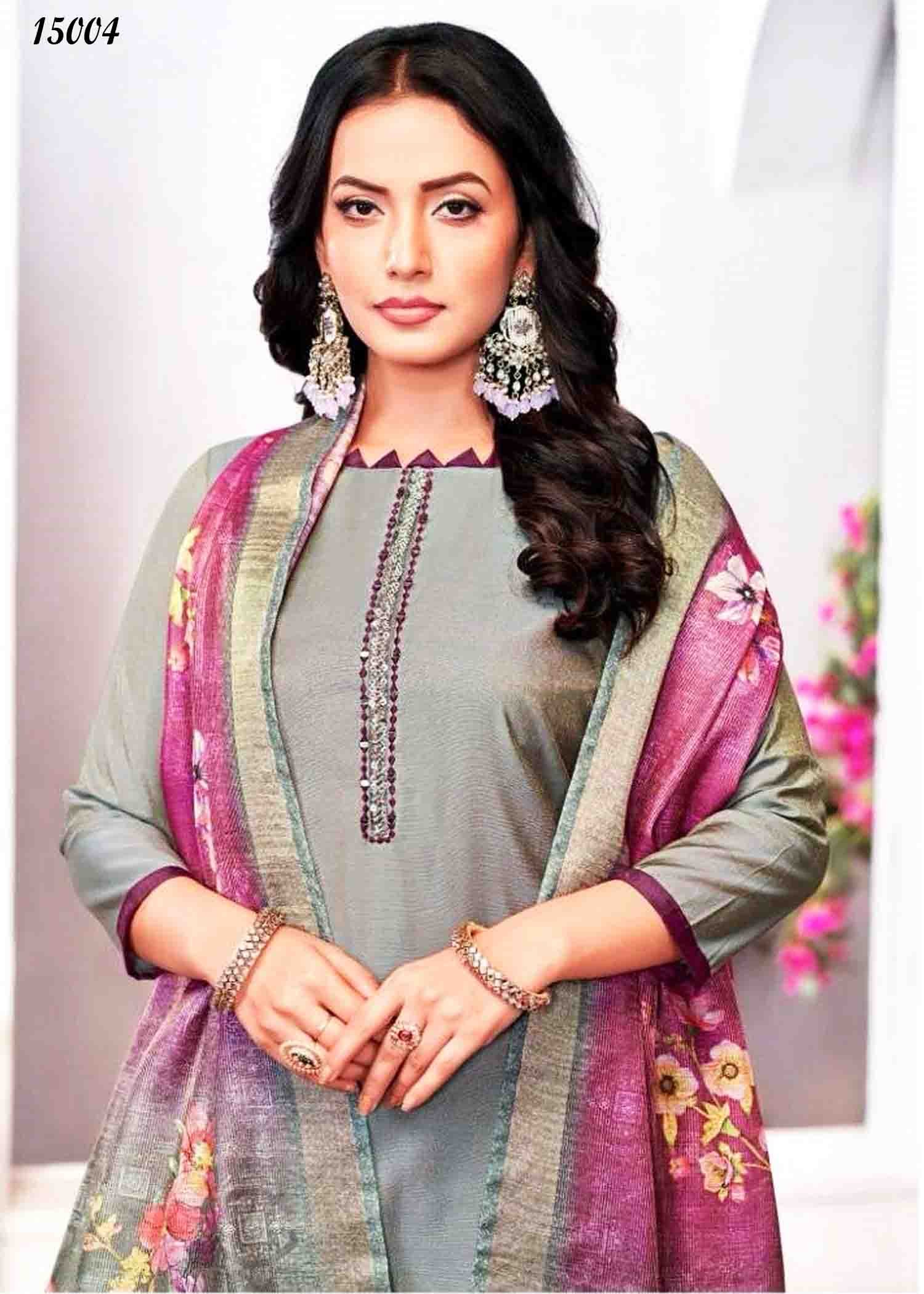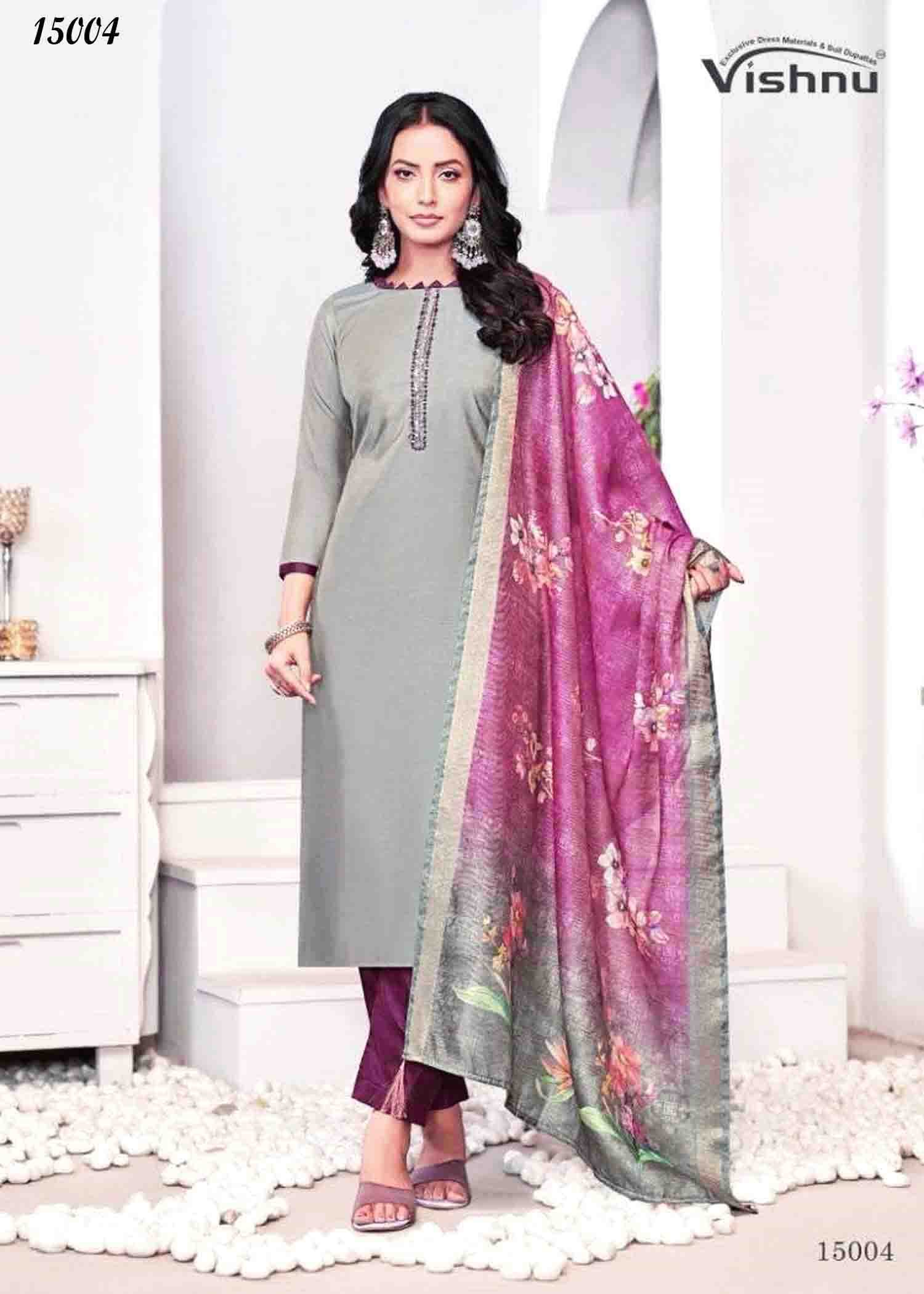 Vishnu Alizza – 15004 Ash Color Simmer Fabric Fancy work Salwar Material CM1345413