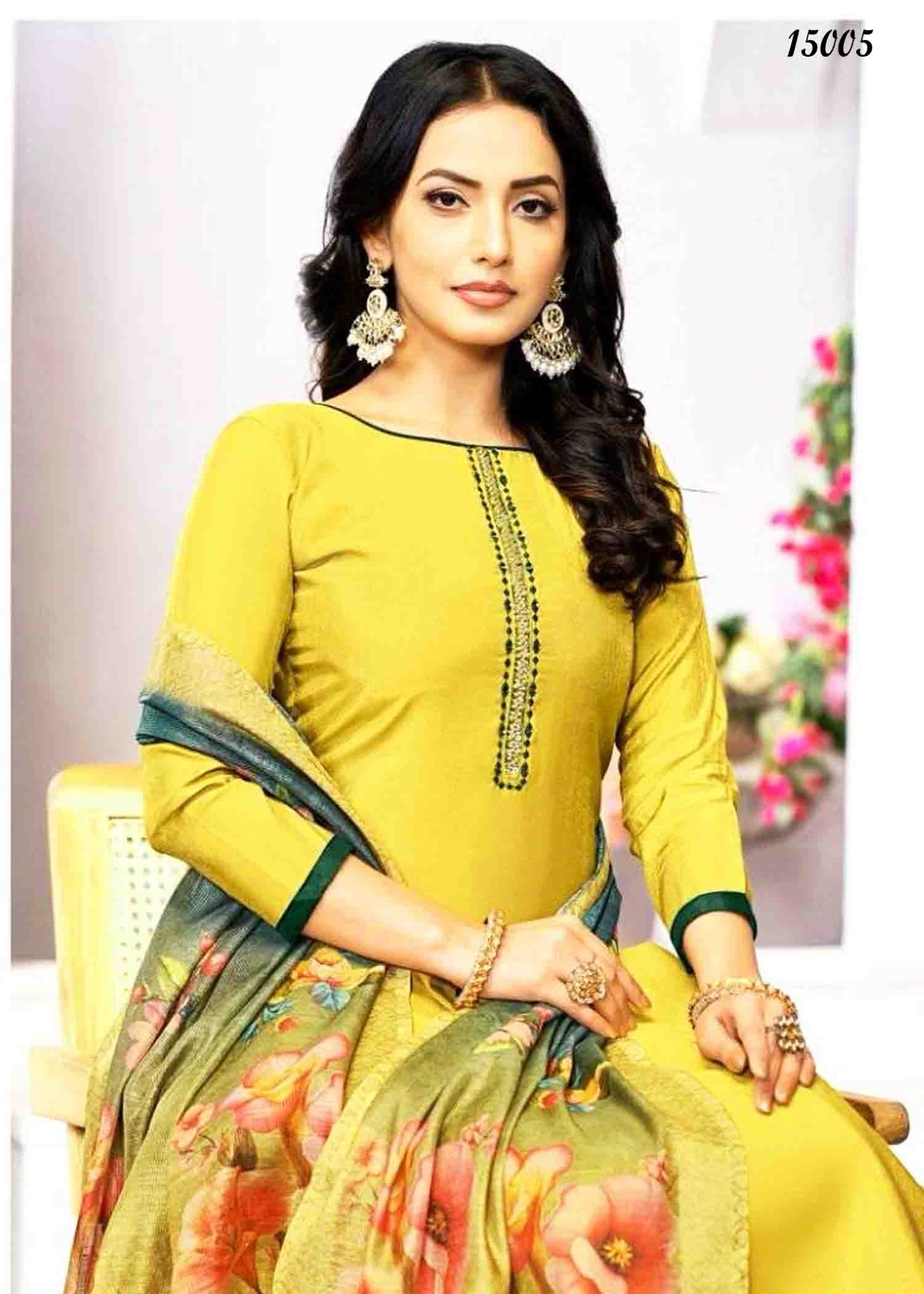 Vishnu Alizza – 15005 AvocadoGreen Color Simmer Fabric Fancy work Salwar Material CM1345413