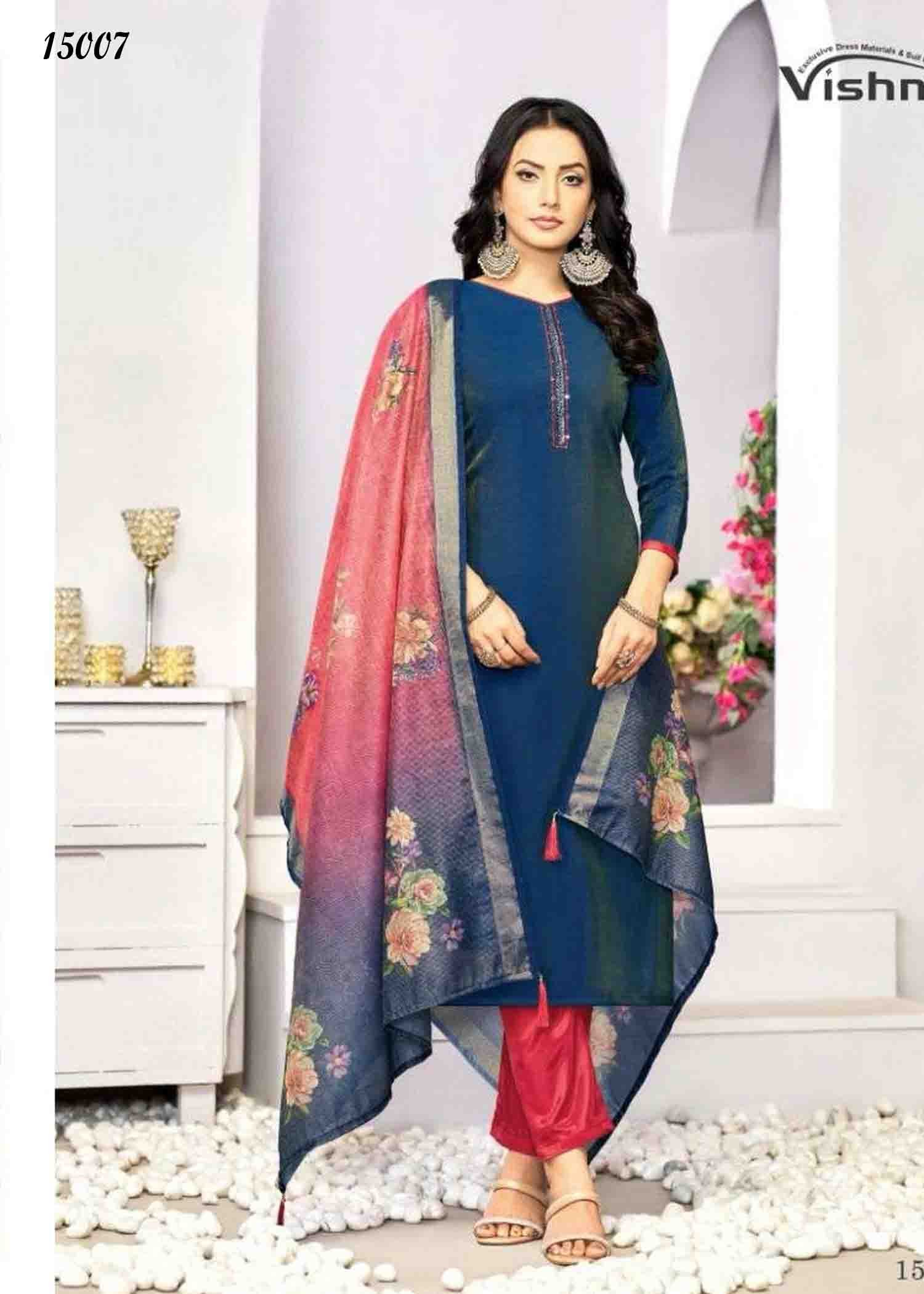 Vishnu Alizza – 15007 SpaceBlue Color Simmer Fabric Fancy work Salwar Material CM1345413
