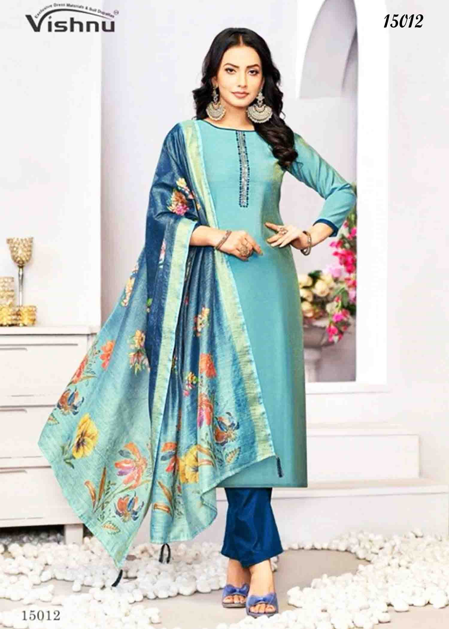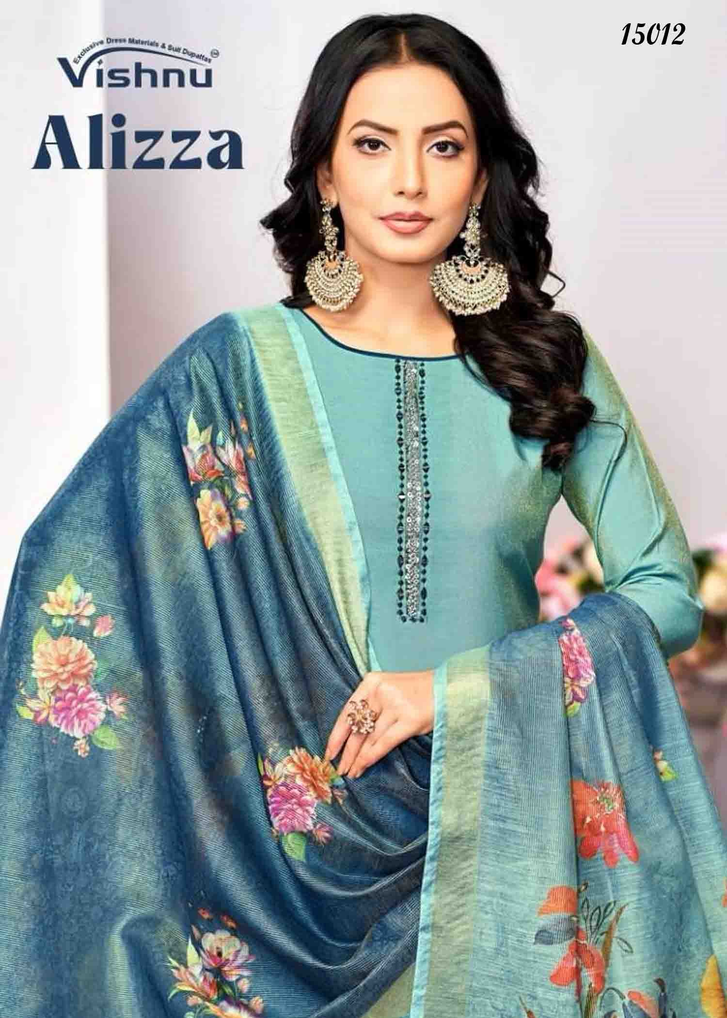Vishnu Alizza – 15012 JungleGreen Color Simmer Fabric Fancy work Salwar Material CM1345413