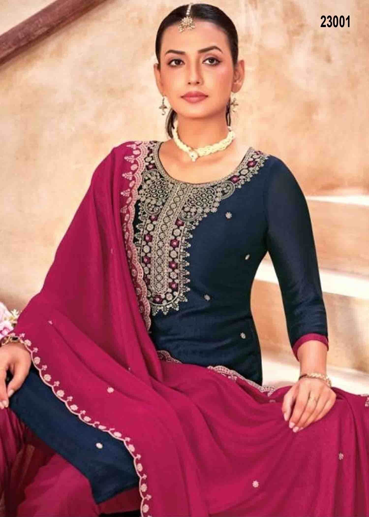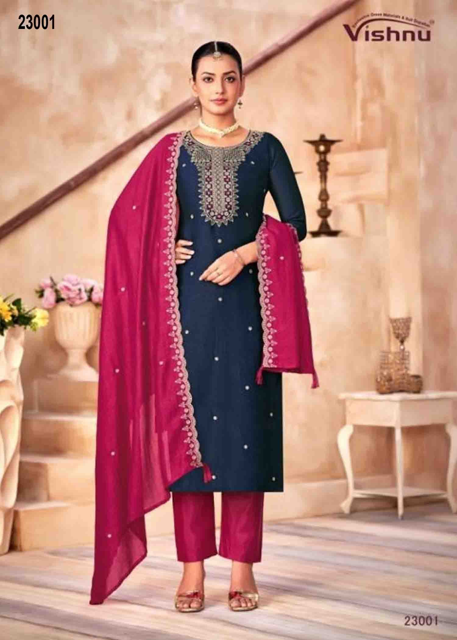 Vishnu Haseena – 23001 NavyBlue Color Traditional Look Vichitra Silk Salwar Material CM1345685