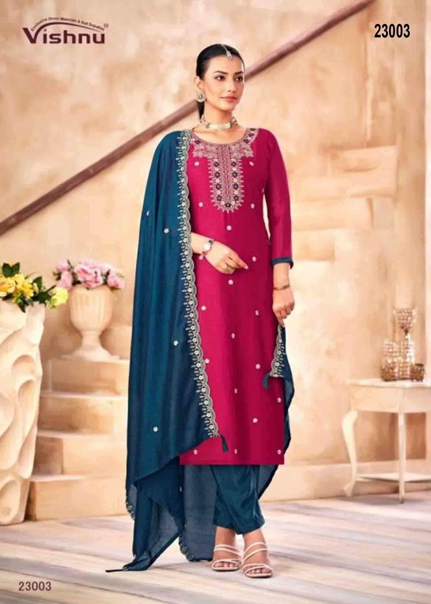 Vishnu Haseena – 23003 Dark Pink Color Traditional Look Vichitra Silk Salwar Material CM1345685