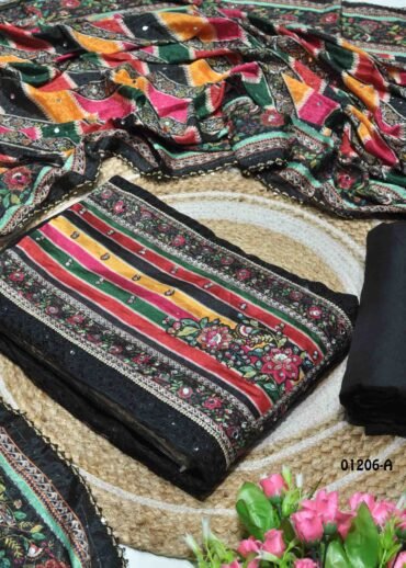 | Occasion : Festival Top : TeaGreen Color N.C. Vichitra Silk Salwar Material (2.30 METER) Inner : TeaGreen Color Dull Shantoon Material (2.10 METER) Bottom : PeacockGreen Color Dull Shantoon Material (2.10 METER) Shawl : PeacockGreen Color N.C. Vichitra Work Shawl (2.20 METER) Weight : 590 Grams Work : Embroidery & Sequence Wash : Normal Wash |