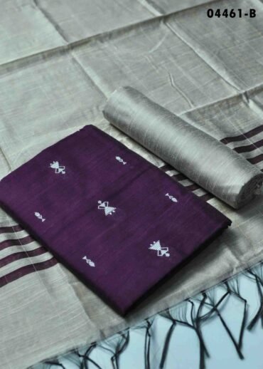 | Occasion : Festival/Casual Top : Purple Color South Cotton Salwar Material (2.20 METER) Bottom : Tan Color South Cotton Material (2 METER) Shawl : Tan Color South Cotton Shawl (2.10 METER) Weight : 640 Grams Work : Tassels Wash : Normal Wash |