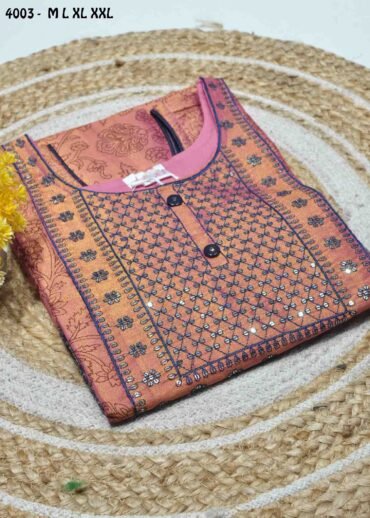 | Occasion : Perfect Look for Everyday Wear Fabric : Tissue Color : Gold Top : Embroidery & Stone Size available : L XL 2XL 3XL Weight : 240 Grams Wash : Normal Wash |