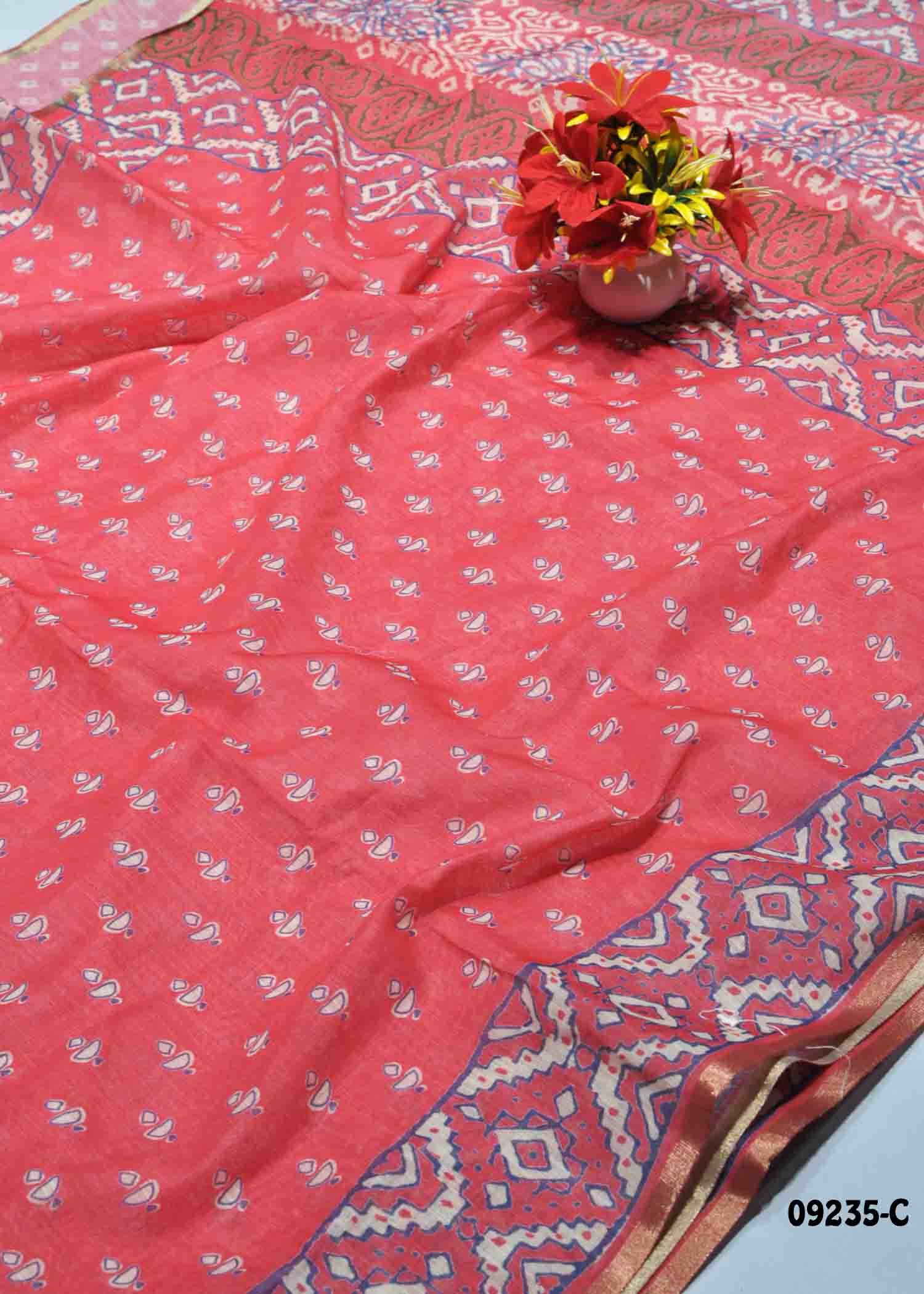 Yazhnila -09235-C ValentineRed Color Stylish Linen Cotton Saree CM1282034 [LR5D]