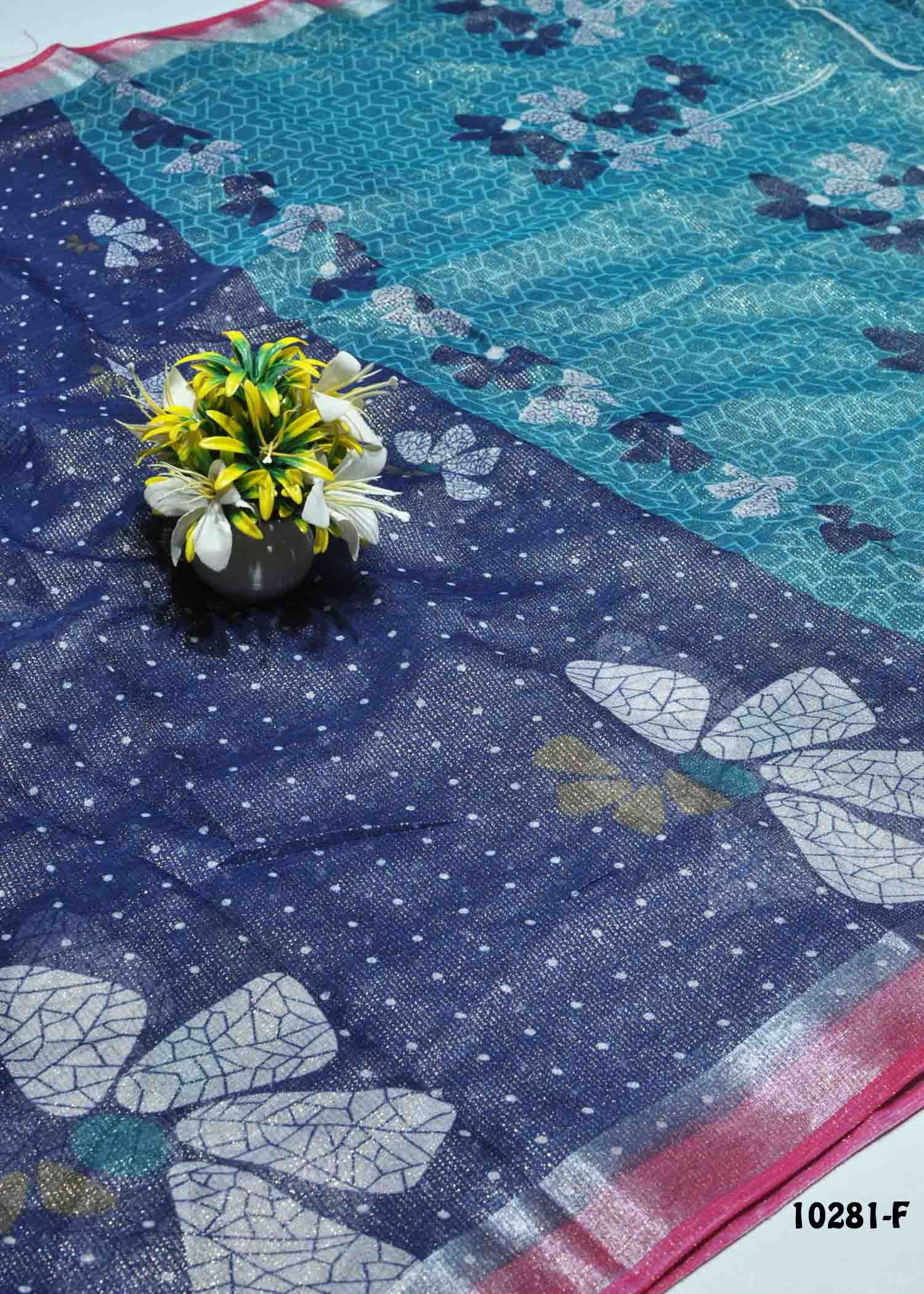 Yazhnila -10281-F NavyBlue Color Trendy Jute Cotton Saree CM1310485 [LR7B]