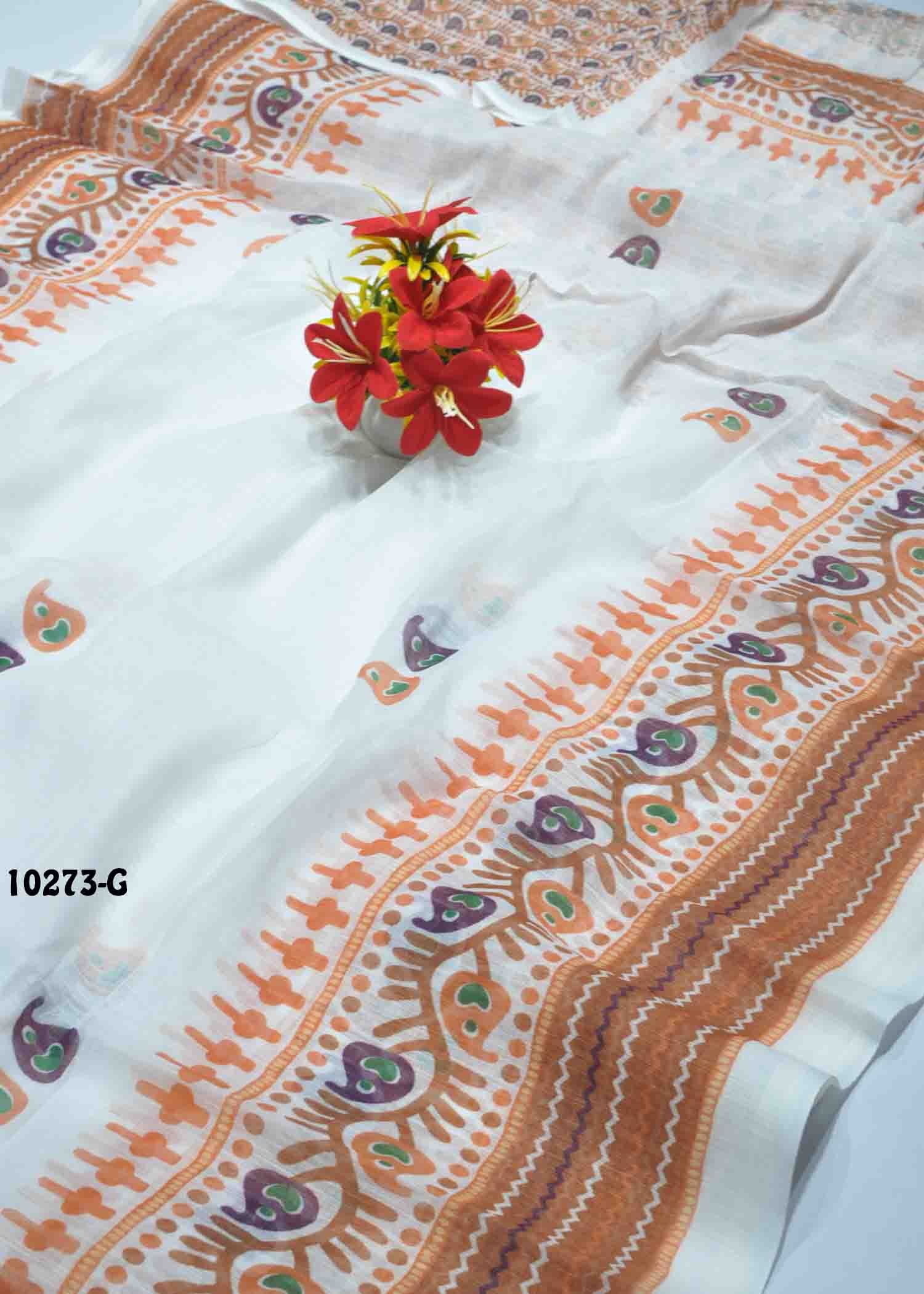 Yogini -10273-G Halfwhite Color Trendy Linen Cotton Saree CM1286740 [LR7E]